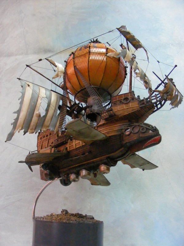 Ко всей фэнтазийной атрибутике турбины вентиляция двигателей (от FW-190 ?) как-то слишком техногенно выглядят. Надо было не использовать капоты от самолетов ВОВ, а навоять этакое деревянное. И шар ну уж черезчур мал (даже принимая условность жанра) - закон Архимеда никто не отменял, насколько я слышал.