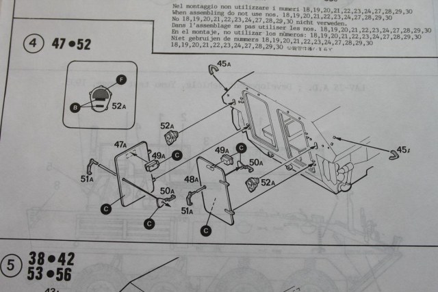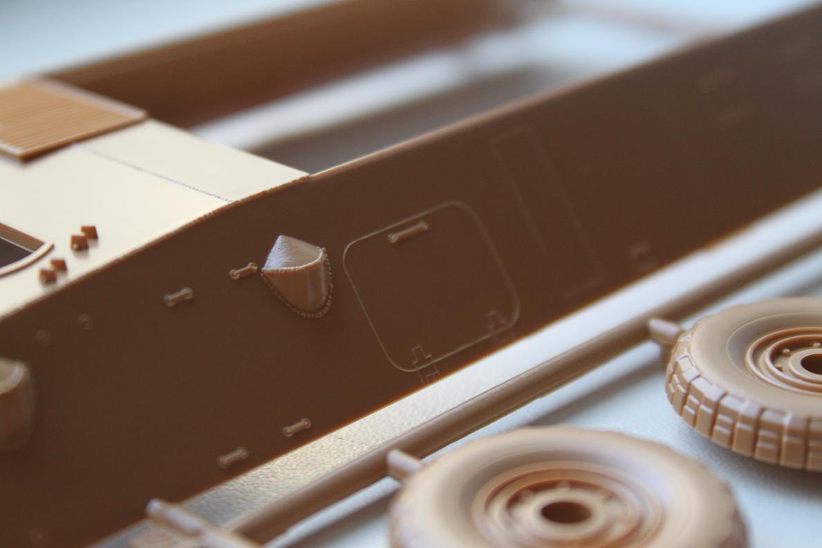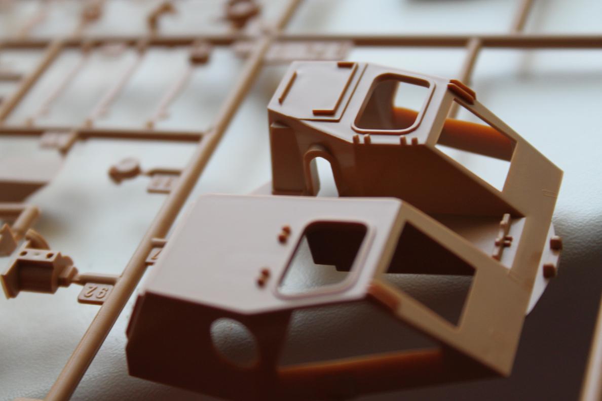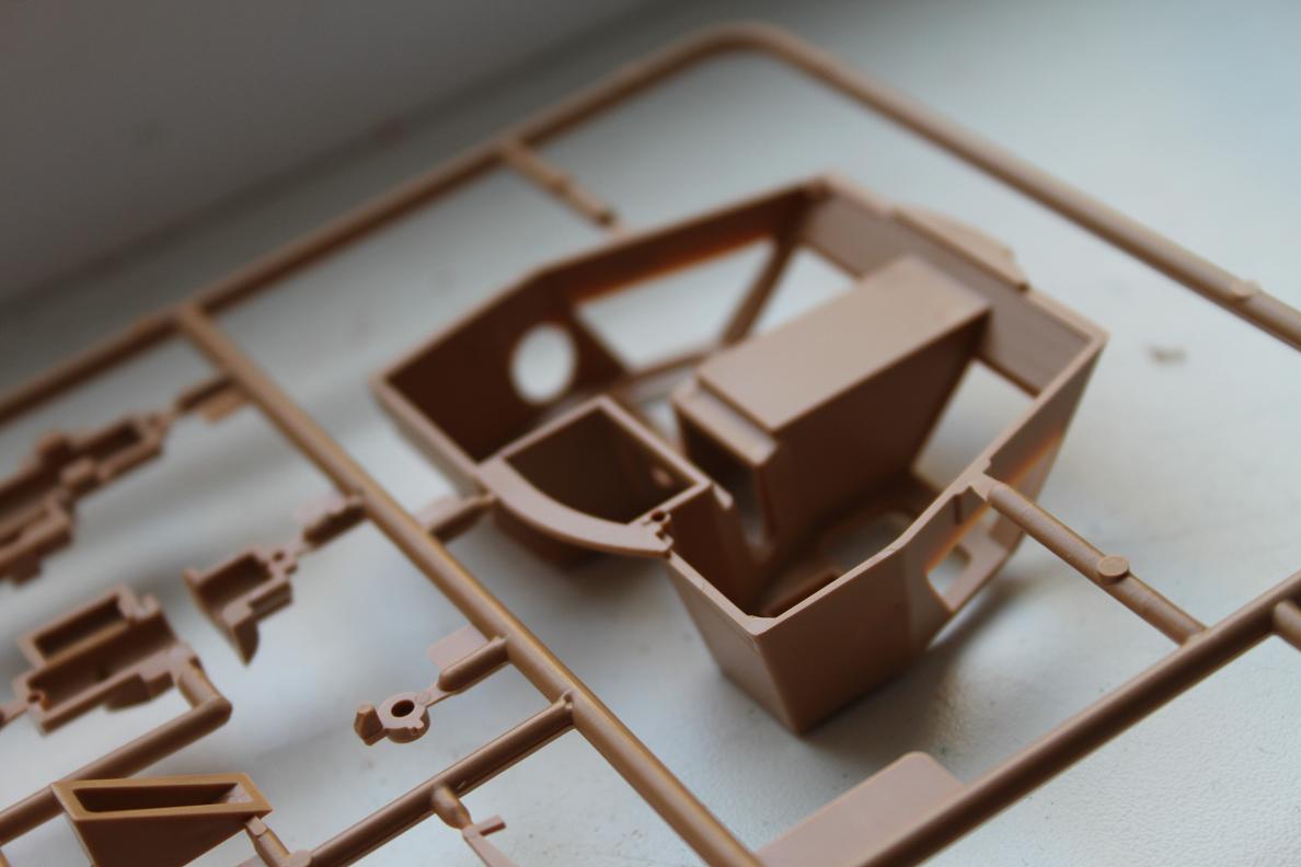 Что в коробке? В коробке лежит инструкция на 11 действий, много мелких деталей на литниках, швы хорошо проработаны, с геометрией вроде все нормально, удивился что такая прорисовка люка( фото есть) с такой расшивкой, а оказалось реально. Решетки как и у трумпа не правильные, колеса в пластике и из 2 частей это плохо, ибо следы стыка и просее будет тяжело немного заделывать, утяжины в очнь не приятных местах, например там где болты, и их много, но не больших. облоя почти нету, к сожалению забыл сфоткать прозрачные детали. на них что плохо что дворники отлиты вместе со стеклом , будет проблема в окраске, деталировка кабины бедная, ну и вроде все, буду покупать травло от вояджера, стройку открывать не буду ибо она уже есть у Дана.