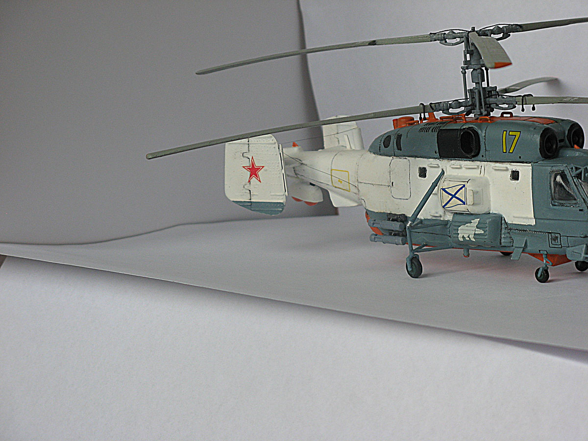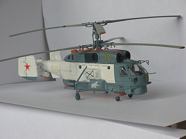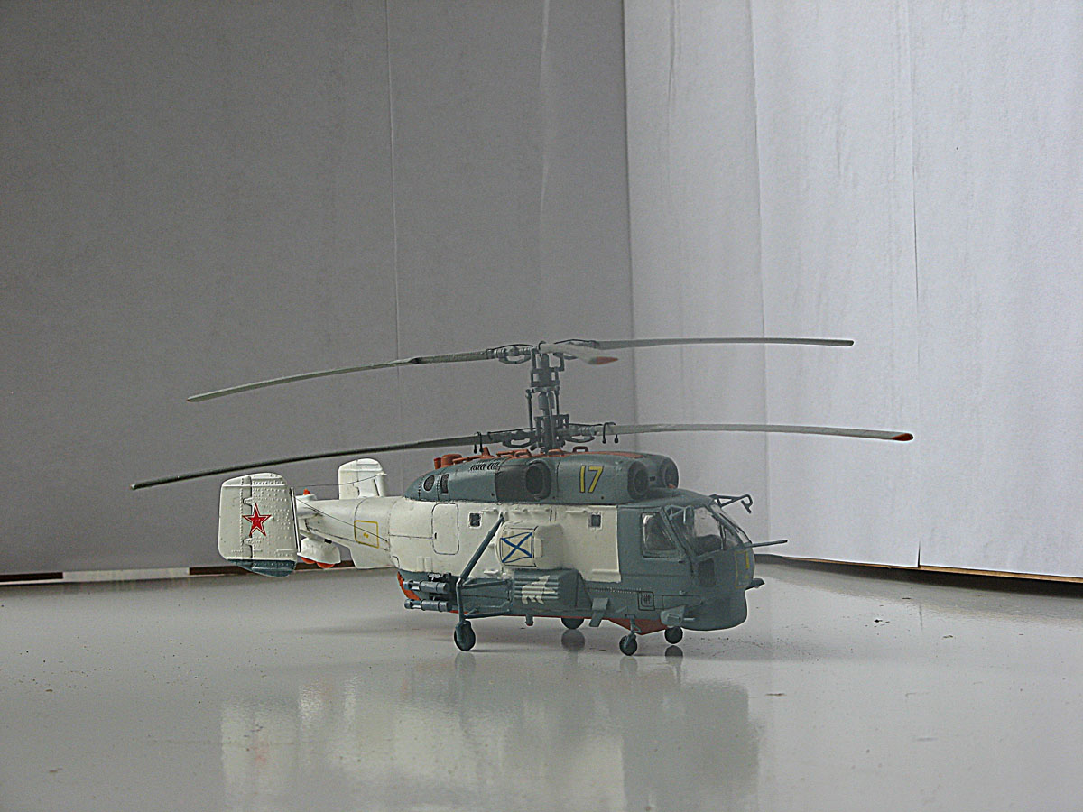 Доброго времени суток.Решил выставить модель этого вертолёта.По модели-на некоторых деталях было смещение пресс-форм ,так что пришлось немного пошкурить,но что меня действительно расстроило так это остекление-оно какое-то мутноватое,кабину через него почти не видно.Собираемость нормальная ,только со стойками шасси пришлось повозиться.Окраска:звездинский акрил через аэрограф,потом слой ревеловского глянцевого лака ,декали(Mark fit от Тамии их нормально приварил)смывка на акриле,слой матового лака , приклеил винт-и на полку!
