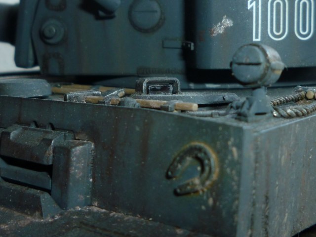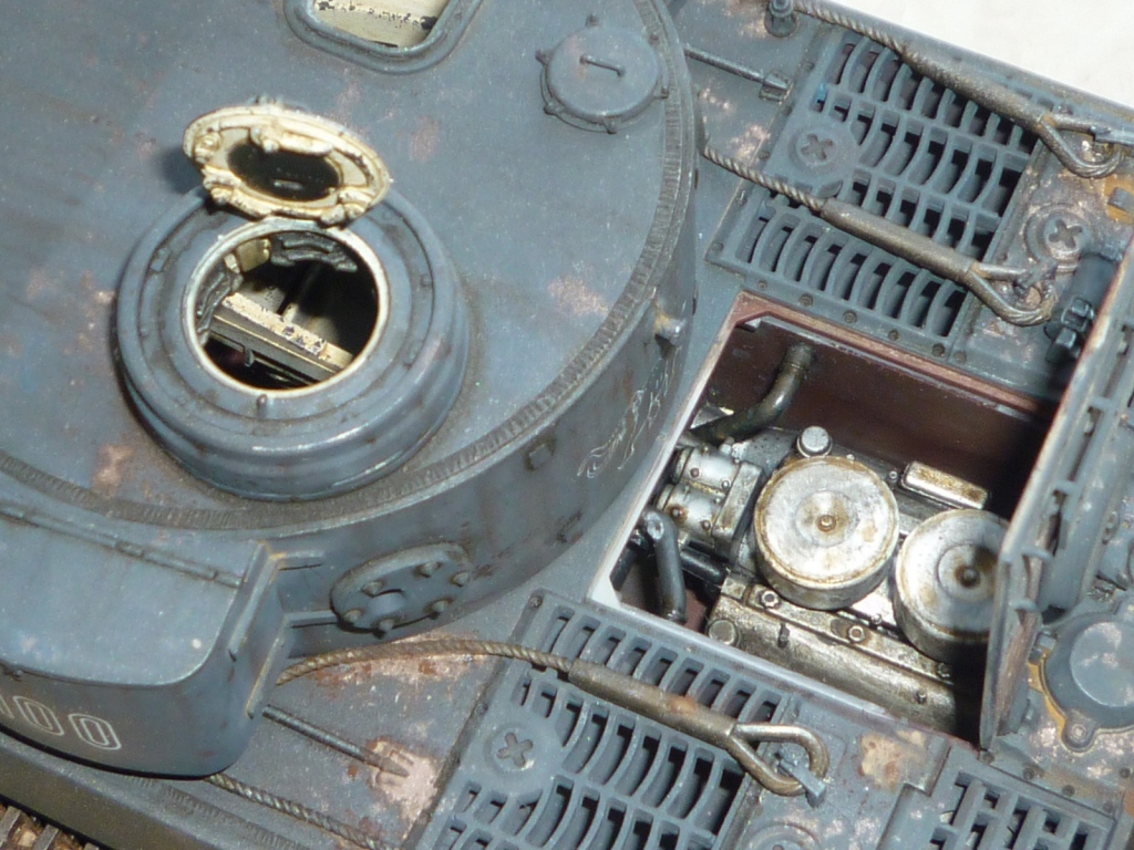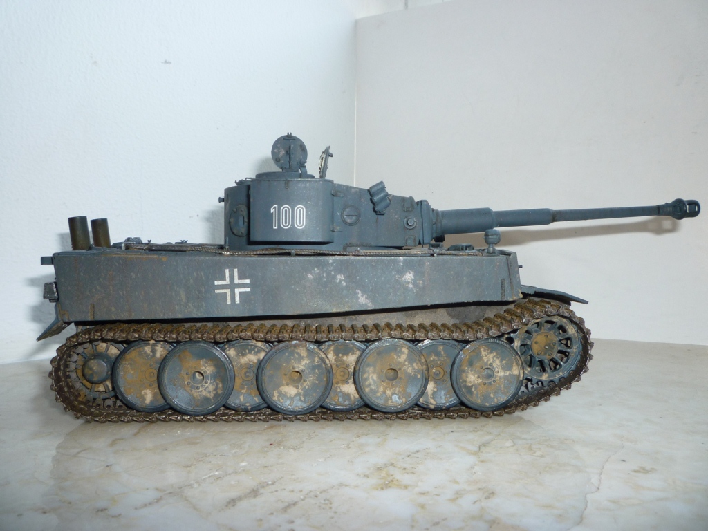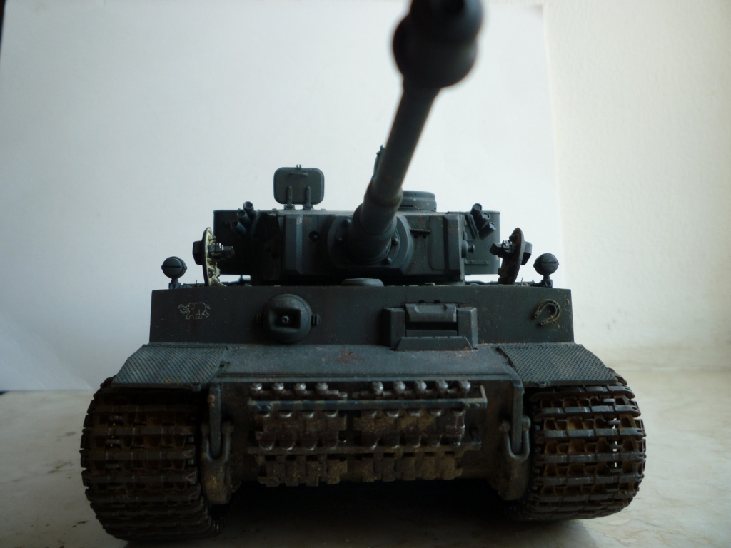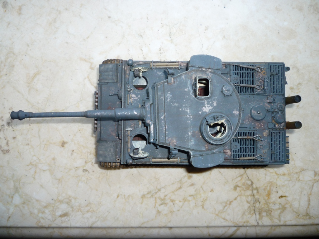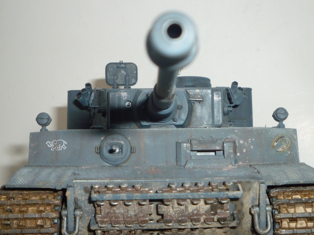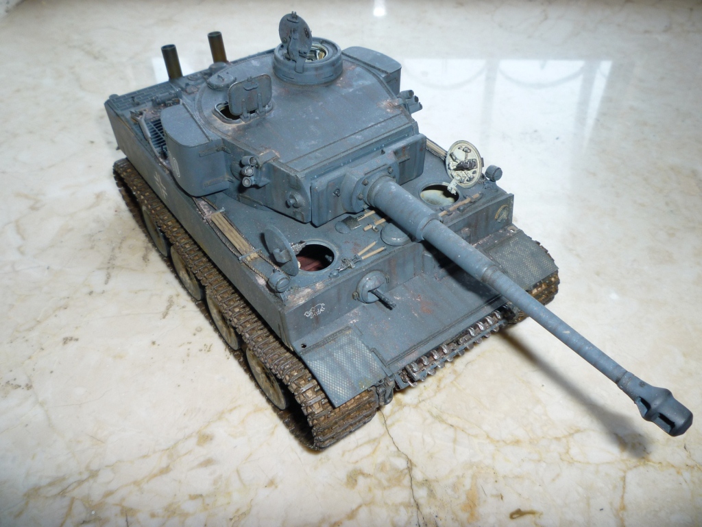 такое ощущение, что местами "смывки" не хватает... так же не хватает грязи, точнее она отсутствует на обратной стороне катков и на днище так понимаю тоже))). выхлопные трубы "прорезами" внутрь стоять должны. а так хороший тигр! успехов!