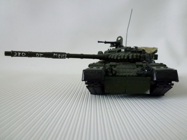Это второй кошмар моделиста - живой свидетель прототипа...Помыли между боями, ребята рассказывали, если было время и чем...грязь и снег не делаю...если делать чеченские танки в грязи - отличить 72ку от 80ки будет затруднительно...В упоминаемом мною журнале это называется "пластилиновое поле"...Спасибо за комментарий!!!