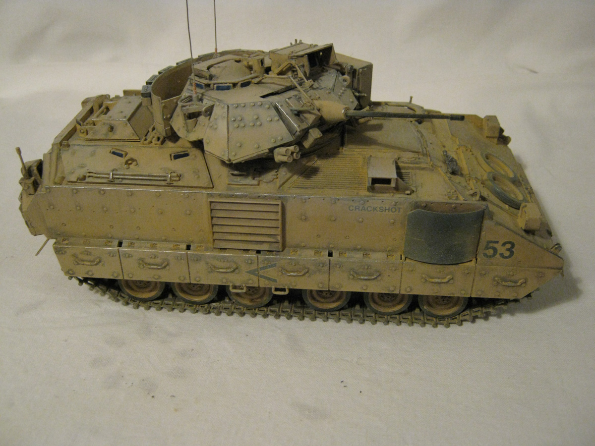 Доброго времени суток, господа каропчане! Представляю на ваш суд свою вторую модель. На этот раз это м2а2 брэдли времён войны в Ираке 2003 года. Сборка производилась из каробки, от себя добавил антенны. Собиралась модель идеально(благо теперь есть с чем сравнивать), и имеет очень приятный в работе пластик. Красил кистями, красками от Mr. Hobby, смывка от Valejo, пигменты от Mig.