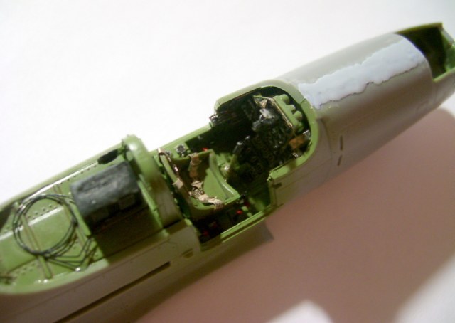 Постройка доставила массу положительных эмоций,кроме,пожалуй,"вживления" одного из крыльевых ниш шасси,и в этом ,кроме себя, винить некого.По большому счету смоляные детали Aries не сильно отличаются деталировкой от "родных"(можно было и не менять),но задача была "отрезать и поставить",и поскольку делал это впервые-без ошибок не обошлось.Потраченное время на исправление компенсировалось вполне приличным результатом(на мой взгляд)).Капоты двигателя оклеил фольгой-самоклейкой и продавил замки.Закрылки собрались без проблем,а вот с установкой пришлось повозиться.Открытую часть закрылков приклеил после покраски, как и патрубки.Так же "посадил" на футуру правую дверь,дабы в конце работ сделать её открытой.
