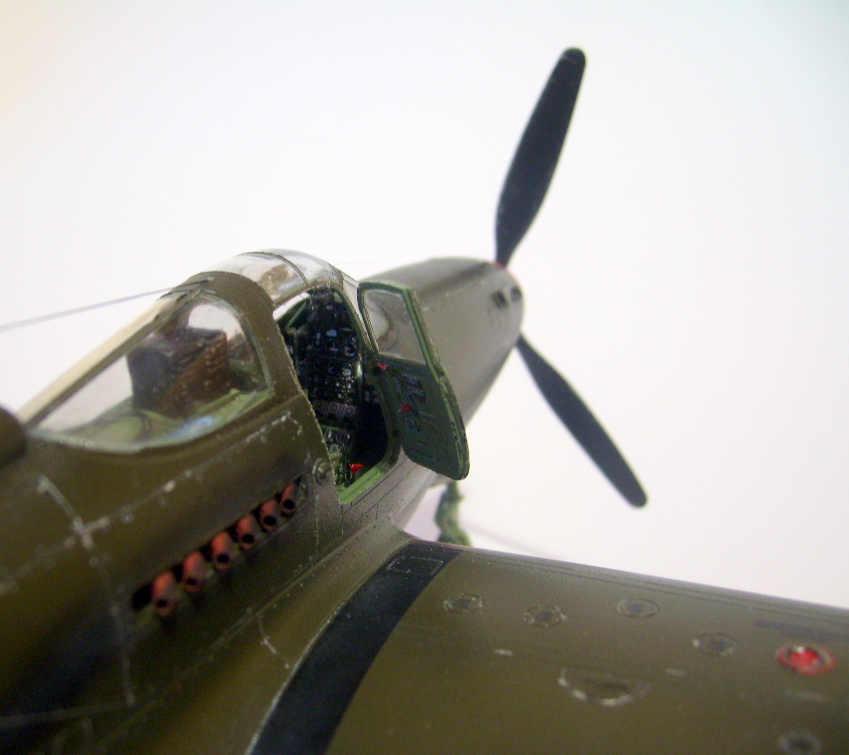 Заглянул в кабину через открытую дверку и ахнул! Обалденно! Уважение автору! Что касается оливдраб... по моему скромному мнению,если и темноват,то некритично.И потом,фото могут не совсем точно передать цвет и свет.Тут на грани... .Если самолёт подвыгорит на солнце-будет самое оно.Кто знает,может и приходили именно такие самолёты по ленд-лизу со свежей заводской краской?