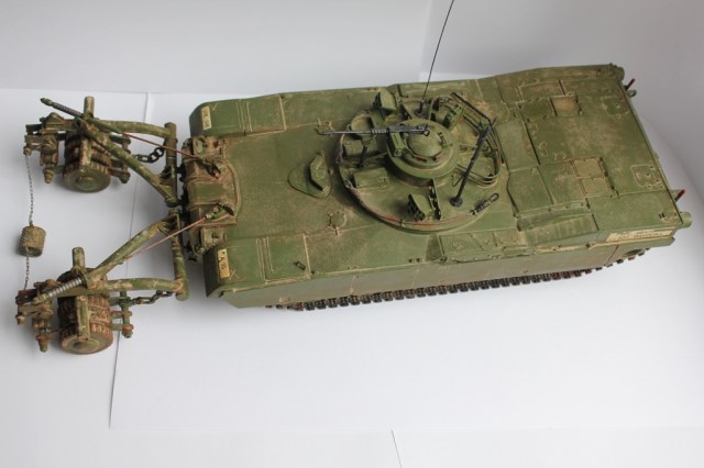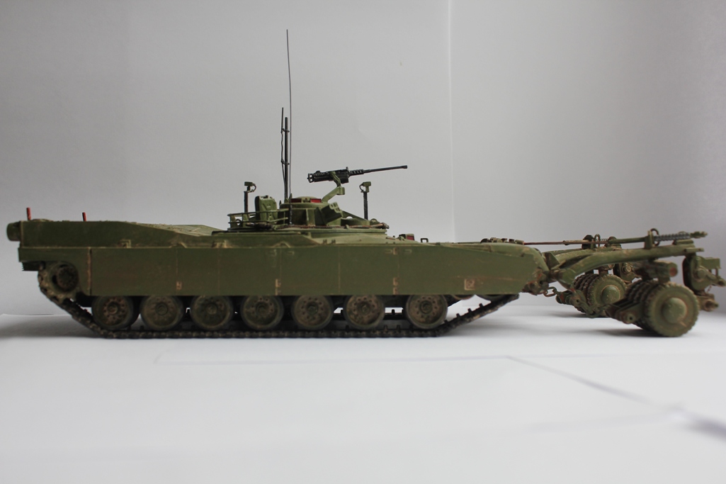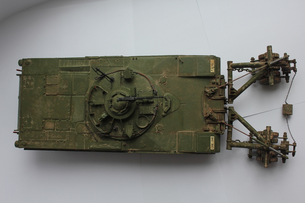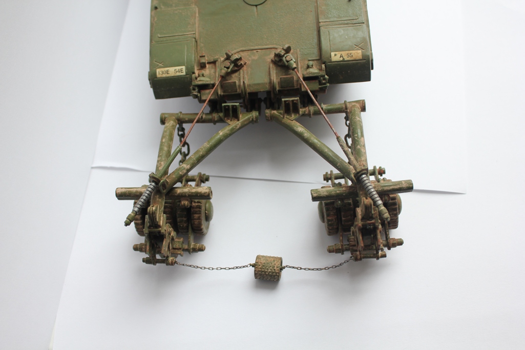Зачем заржавили тросы держащие трал - в Ираке проливные дожди редкость...вообще эта машина РЕДКОСТЬ...применяется в безлюдном варианте - робот...я нашел фото - там ролика между тралами нету...да он и короткий ...сами посмотрите...а найдете фото с ним - ради бога...ходовку и трал сильно запылить - пески и т.д если в Ираке с 2003...а если в Косово...видите как описание подводит...
