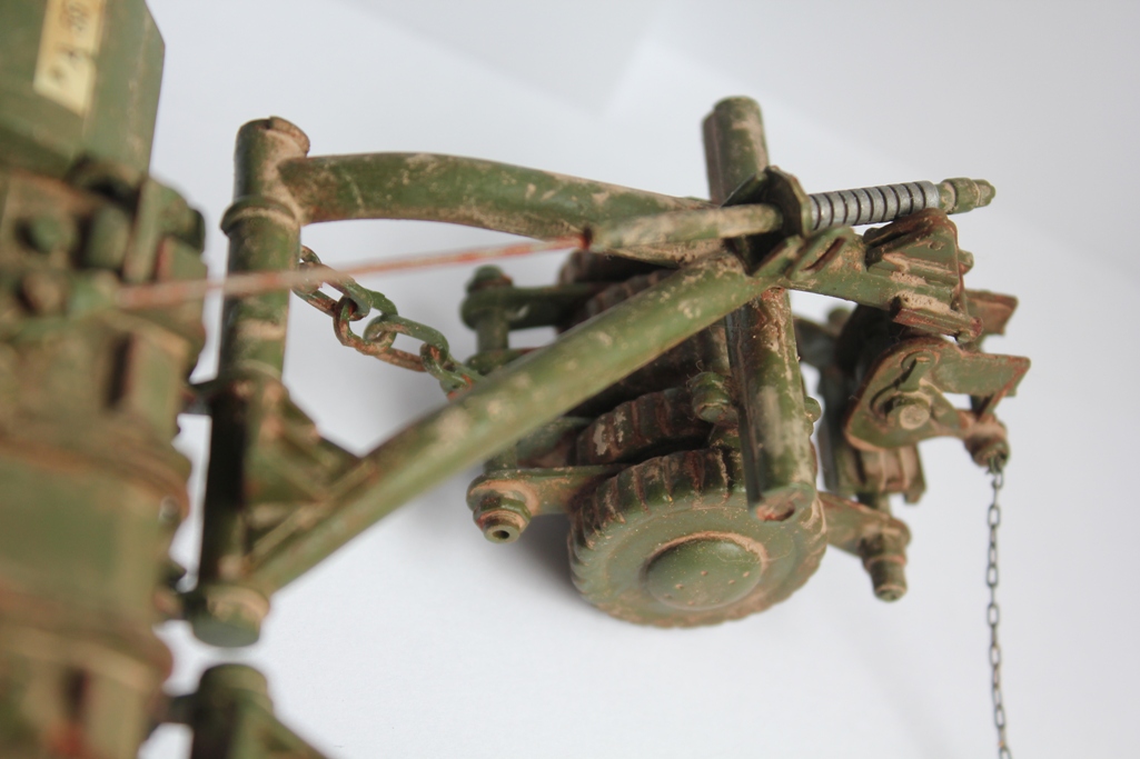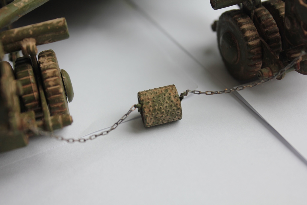 На фото с которых делал этот аппарат действительно ролика нет , но я решил его сделать сугубо для большей деталировки . Тросы на фото ржавые все , как на поддержке трала , так и буксировочные .
