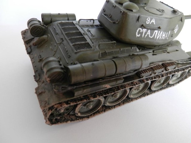 Сборка аккуратная. С цветом явно не угадали. Смывка и пигменты нанесены по принципу -лишь бы было. Грязь нанесена непонятно по какому принципу. За катками корпус совсем чистый, при такой гагрязнённости задних щитков. На траках та же ситуация.