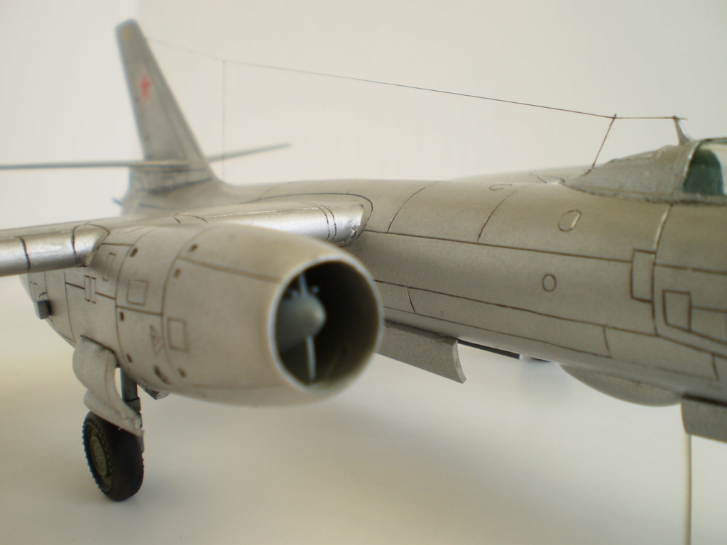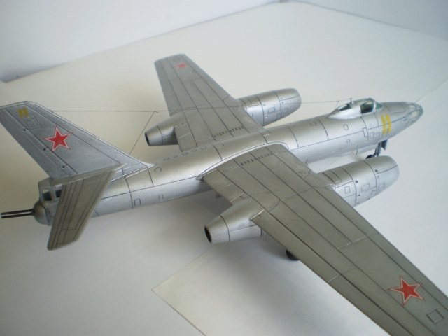 Модель оставила приятные впечатления,нравиттся мне ранняя реактивная советская авиация.Из недостатков могу сказать,что с остеклением стоило поработать получше,последнее фото об этом просто кричит.Второе:у меня сложилось такое впечатление,что модель брали руками за хвостовое оперение когда еще не высохла краска,хвост смазан.Понравилось выделение расшивки,и,конечно же несомненный плюс в том,что модель делалась со слов человека,служившего в этой части,вашего отца.Желаю удачи в дальнейших проэктах!