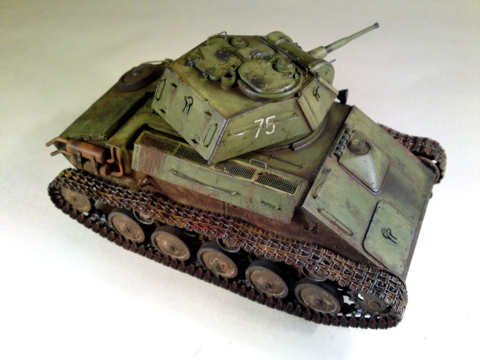 Серия к 9 мая продолжается... :-) Легкий Советский танк Т-80, продолжение Т-60,70, но уже трехместный. Как следствие, башня значительно прибавила в размерах. Получился почти головастик, но ничего так, симпатичный... Серия была небольшая, около 100 штук. Фронт больше нуждался в самоходках на этой базе. К слову сказать, и сеть скудна на фото данной машины.