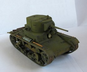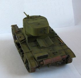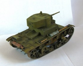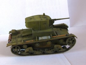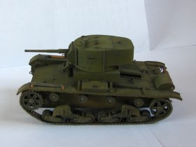 Приятно читать высказывания. Траки фриул-хороши. Но цена в несколько раз дороже модели. Хотя, когда я покупал и собирал этот танк, он стоил кажется несколько тысяч. В те времена моделизм для меня был не новость. В детстве клеил бумагу. Но находился я еще на уровне ученика. Поэтому строил как умел и касаться мат. части не имеет смысла. Сейчас я бы естественно многое сделал по другому. Когда вышла вторая модель Т-26 от "Звезды", я думал пластик свежей разработки и было желание его приобрести. Но увы, оказались старые дрова. А перерабатывать пластик "Звезды", даже при том афтемаркете который на сегодняшний день существует, неохота. Поэтому, для меня "фриул" к этой модели, не приемлем. Будем ждать очередную модель Т-26 от производителей пластиковых моделей. Винил можно притянуть к к поддерживающим роликам, можно сделать и провис и т.д. Но мне охота оставить ходовую подвижную. Кроме того, передние и задние опорные катки на тележках, приподняты вверх. Опять за счет винила. Спасибо за отзывы.