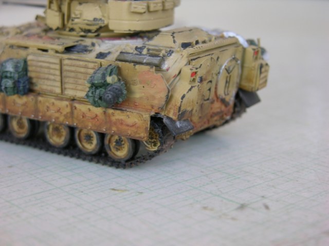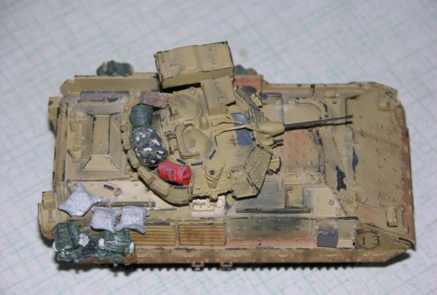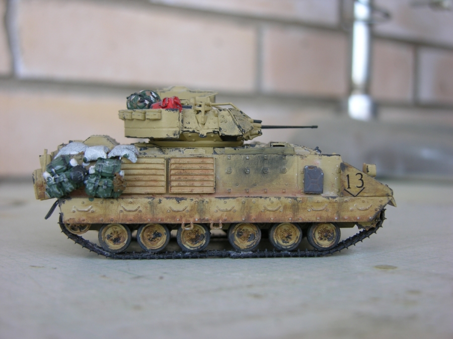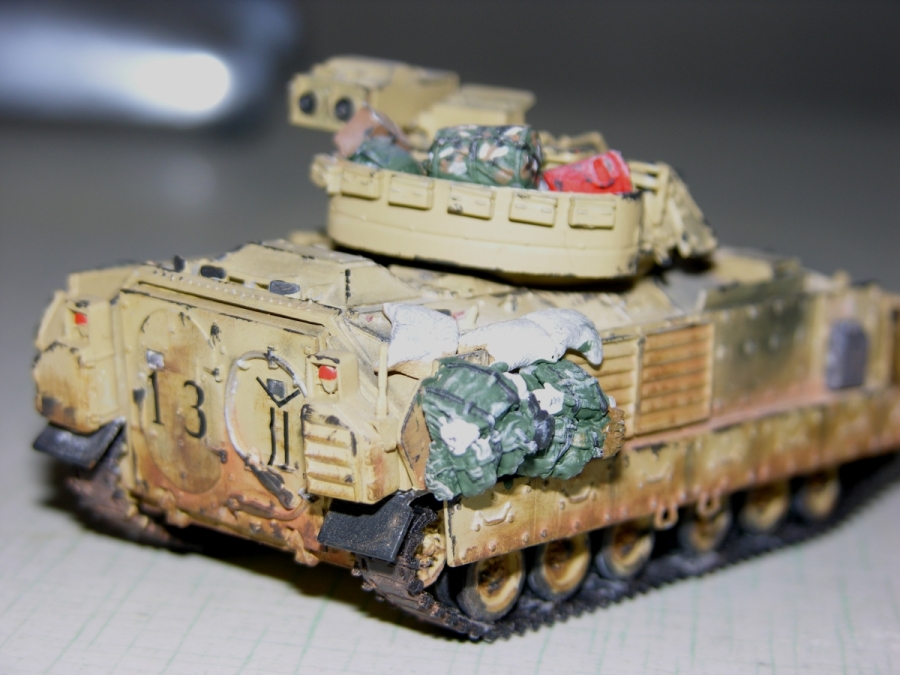 Пепелац М2 Брэдли делают, как мне известно, три производителя, выбор пал на трамп из за адекватной (на момент покупки) цены и наличия внутри нее какого-ни какого интерьера (который мне удалось успешно...запороть, но мысль о том, что он там есть, не может меня не греть (-: ). Сама модель ни к чему не привязана, и сделана изкор для коллекции. Хотя потом на нее налип, доставшийся мне на халяву (отдали в связи с трудностью работы с резино-смолой), автермаркет от черного пса.