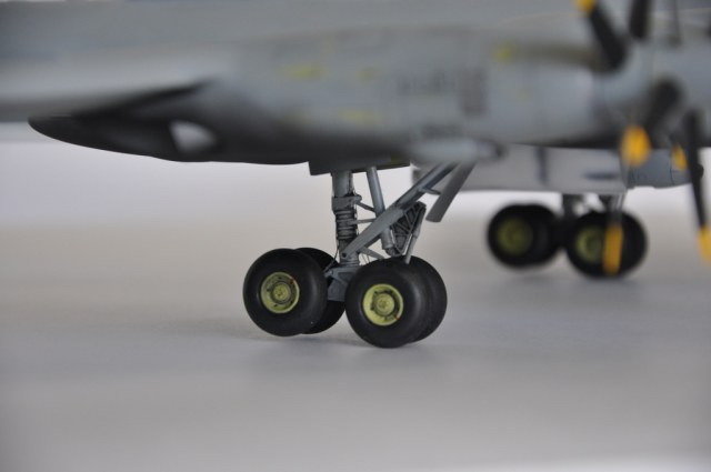 Да, ещё интересный момент, который многие моделисты почему-то пропускают. На многих больших лайнерах, в том числе и на Ту-142МР на верхней части плоскостей нарисованы достаточно широкие цветные полосы: зелёные, жёлтые, красные и т.д. Они обозначают, какие именно винты вкручены в данном месте (обычно различия по длине резьбовой части). Эта часть крыла с морем винтов получила прозвище - "бульвар Туполева".