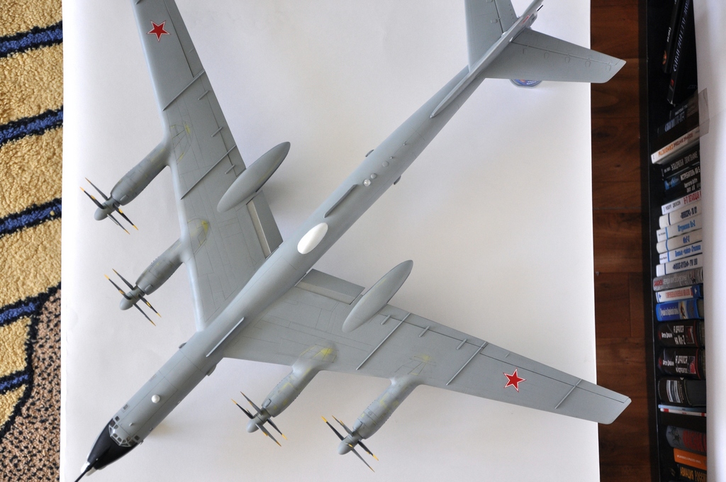На Ту-142 и на Ту-95 разная окраска. На Ту-95 много переходов белого, серого и темно-серо-голубого цветов и металлика. У Ту-95 цветовая гамма побогаче. Сейчас готовлюсь к посторойке Ту-95.