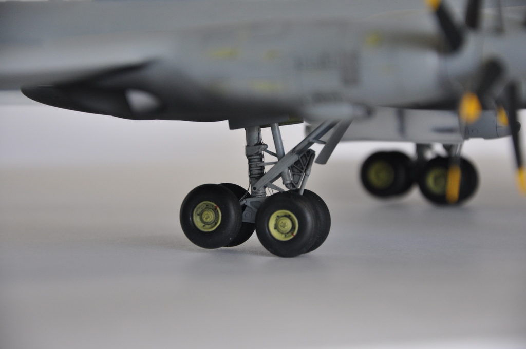 Да, все антенны должны быть покрашены белой радиопрозрачной краской, в том числе и на киле, и шлейфовые на фюзеляже. И лопасти винтов сзади белые полностью и нет жёлтых законцовок. Это унификация с 95-ми. Так называемый "противоатомный цвет"