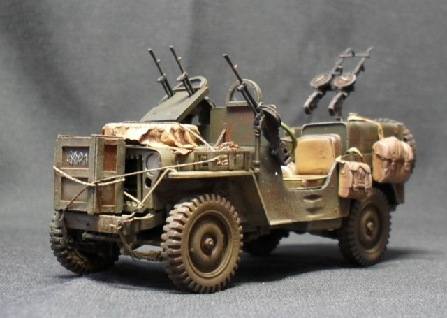 У САС имелись возможности переоборудовать свой транспорт сообразно собственным нуждам. Изначально Виллис в стандартной комплектации максимально "раздевали", убирая всё лишнее, а затем на машину ставились необходимые турели, клети для канистр и различный крепёж для снаряжения.