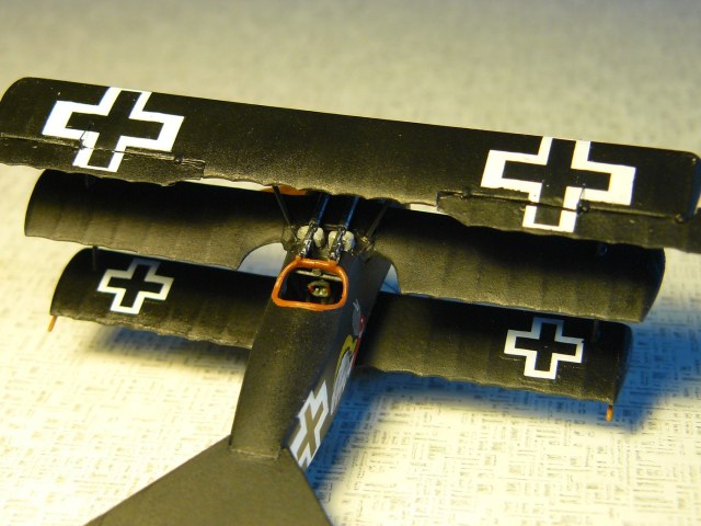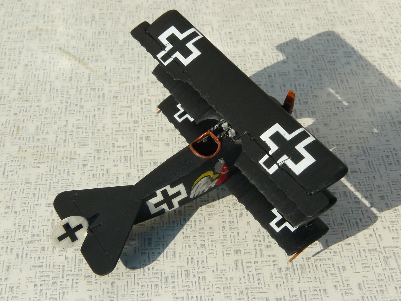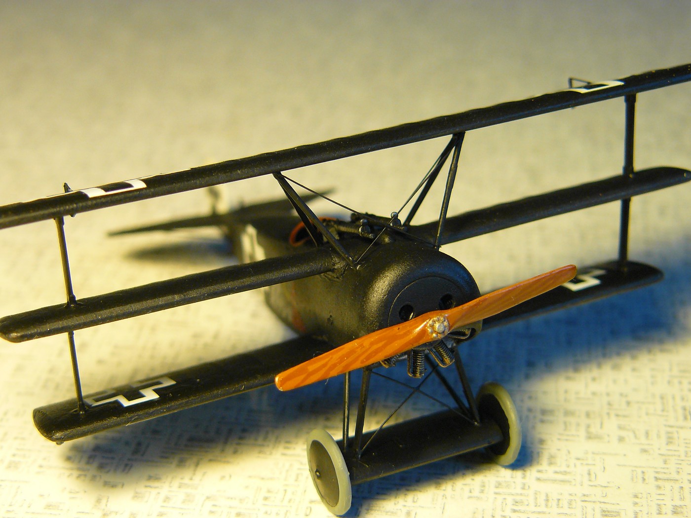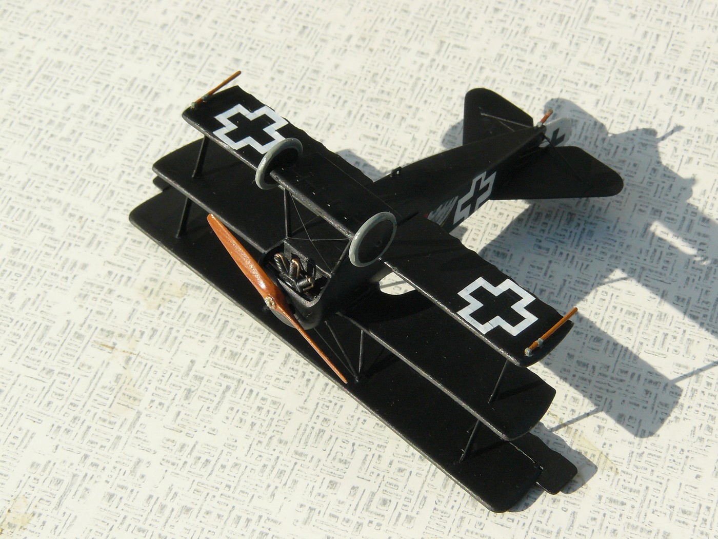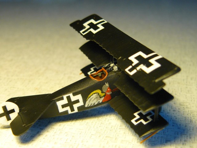 Представляю результат "отдыха", Фоккер Др1. Набор достаточно известный, рассказывать особо нечего. Стыкуемость в норме, шпаклевки почти не понадобилось. Единственная внезапная проблема - оказалось что кабанные стойки короче чем надо на 2мм. Изготовил их заново. Растяжки и тяги - тянутый литник, окраска - аэрограф, акрил Хома, мелочь - нитра, акрил, кисть. До и после декалей - слои Хамброловского сатинового лака. Решил сделать вариант Йозефа Якобса, 450/17, (w/n 2075). Рожа Люцифера - акрил и гуашь.