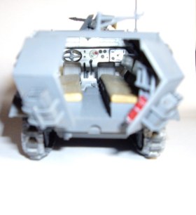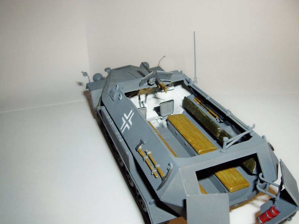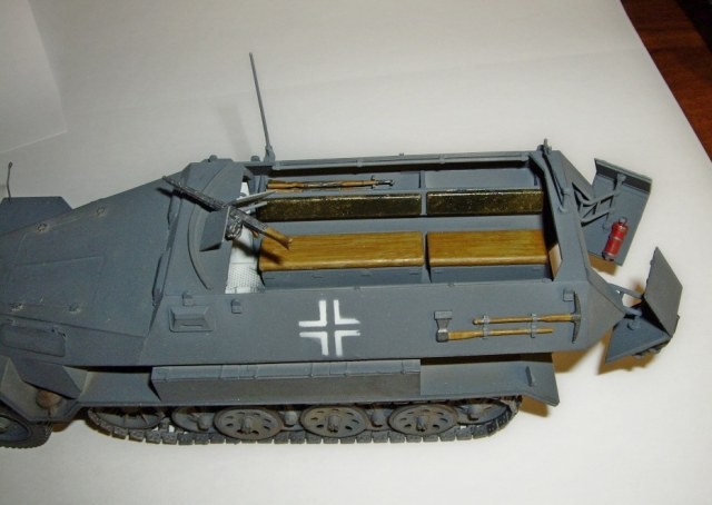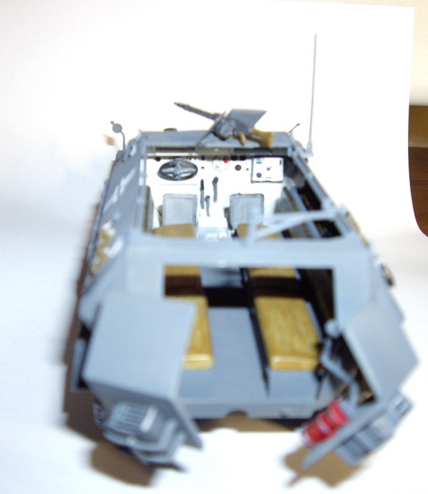 Но так и напрашиваются некоторые "потёртости" на наиболее подвижных элементах: на кормовых дверях, на кормовом держателе пулемёта, да и внутренности в районе водительского сидения уж слишком белые. "Припылить" бы.