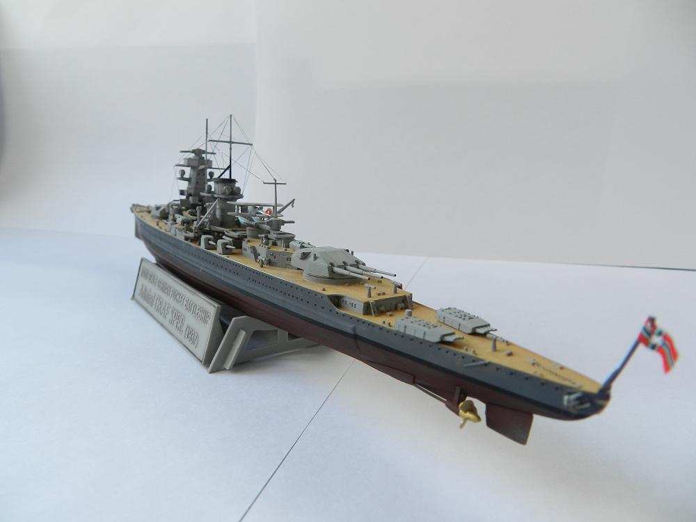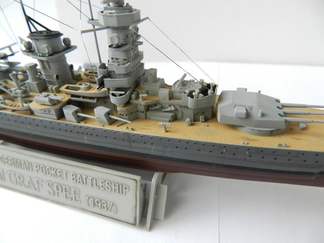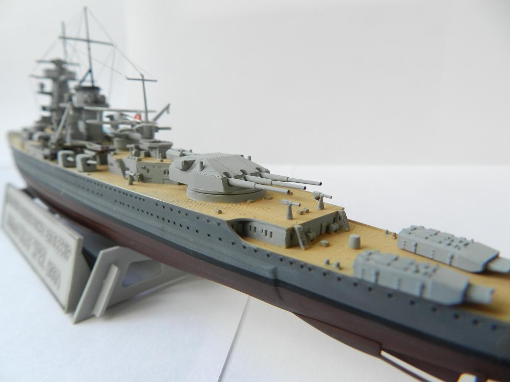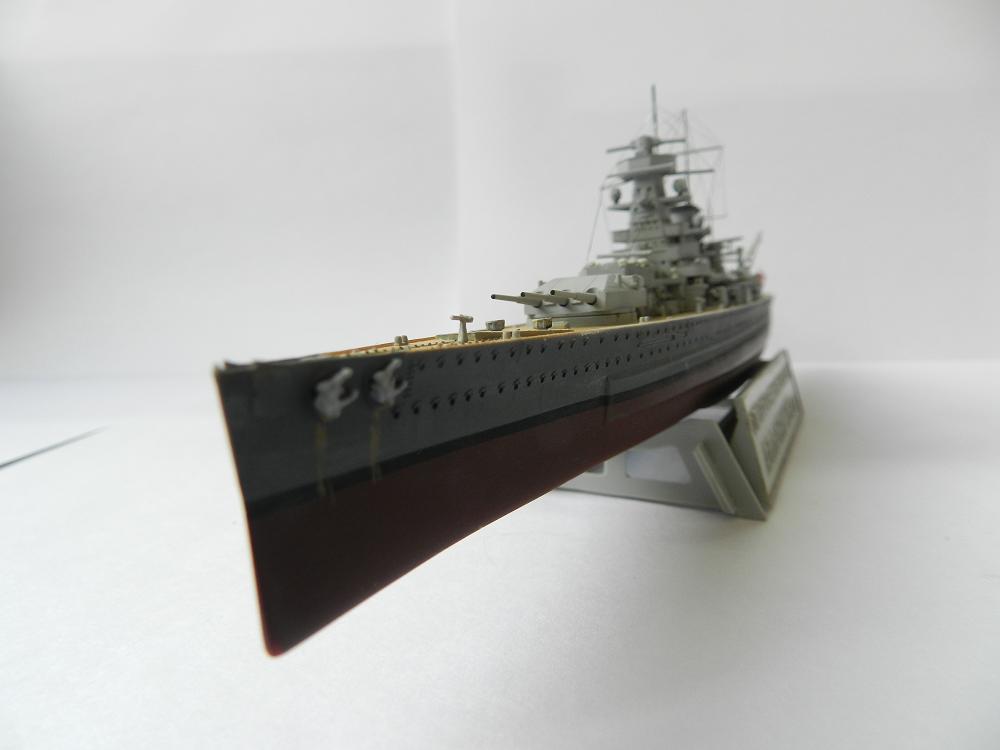 По Вашей просьбе поругаю несильно. На что нужно обратить внимание на следующих моделях. Зачистка швов от прессформ( на всех бронещитах средней артиллерии видны швы). Щели незашпатлёваны между корпусом и "штанами" гребных валов ( фото 11),та же история с башенными дальномерами (фото 13 и14). По левому борту кривовато приклеена передняя башенка среднего калибра. По правому борту стволы среднего калибра "клюют" по углу наклона. Как то так.