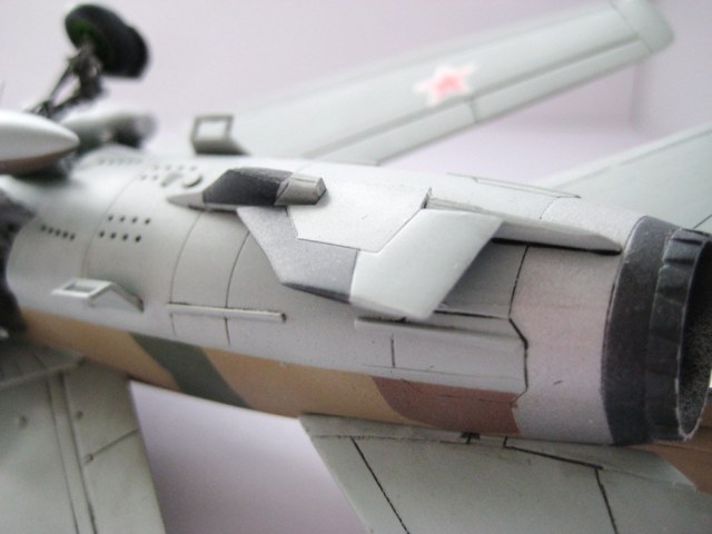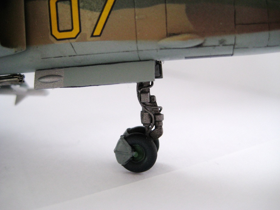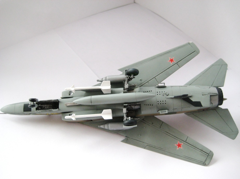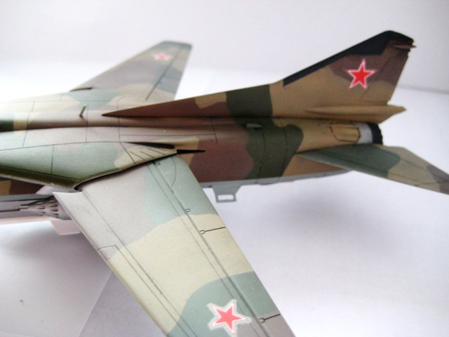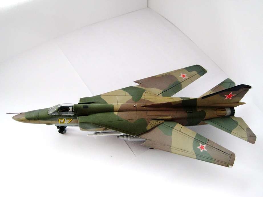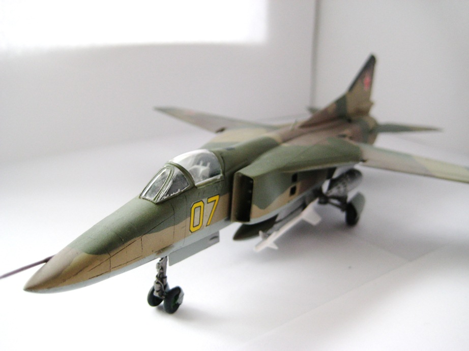 Знаю данную модель очень хорошо! Особых переделок не увидел, стойки родные, ниши тоже, единственно на них сделали проводку и то получилось не очень удачно и неправильно,смотрится грубовато! Помоему заменили только кресло в кабине, поставили от звездовского 21-го мига.Покраска неплохая но вцелом смотриться игрушечно. Данную модель надо много пилить чтоб получилось что-то похожее на 27-ой.