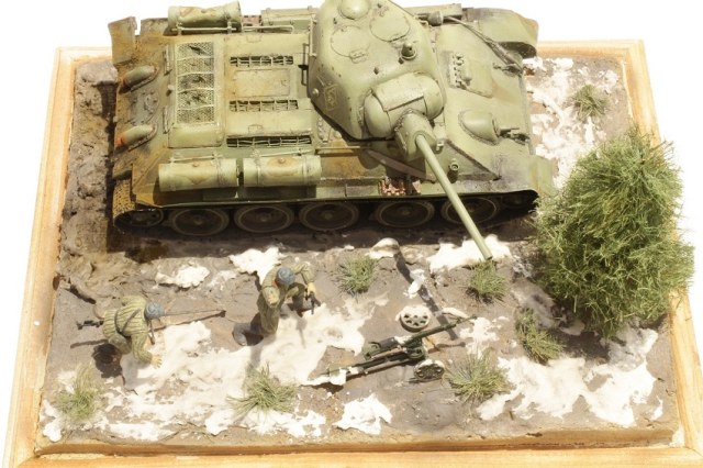 2.Как уже указали,снег не похож-это пена для бритья.Логичнее было бы(здесь я краснею-сам так сделал)насыпать соды вокруг,типа снежная крошка...и не только на основание,но и на танк;