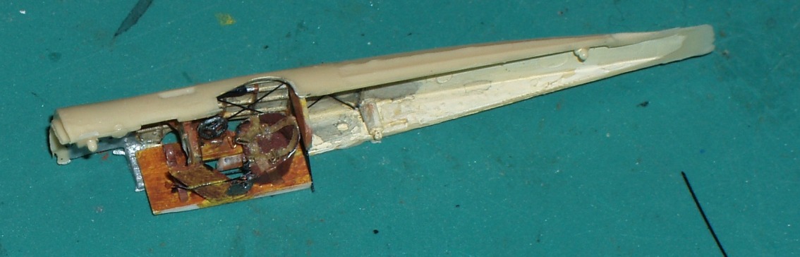 КАБИНА была изготовлена с «нуля», так как из интерьера было только кресло, больше напоминавшее стульчак, « с отверстием». Был имитирован силовой набор на боковинах кабины. Ремни –скотч. Рукоятка была установлена после сборки в положении ,соответствующим отклонению управляющих плоскостей.