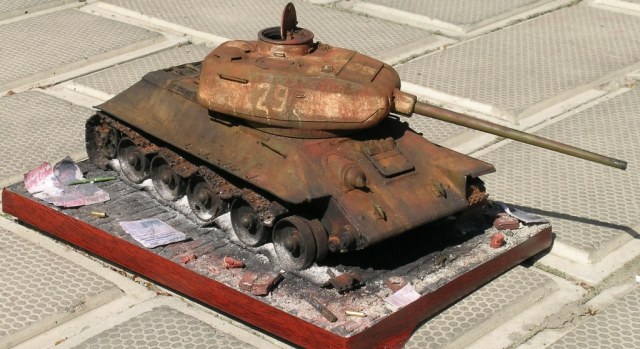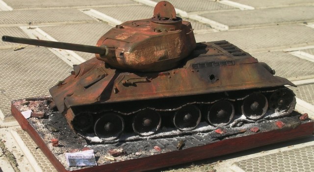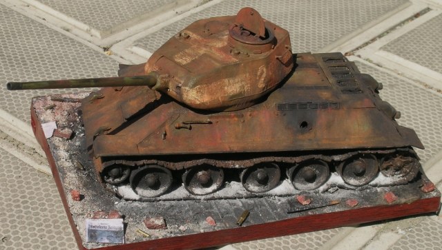Как всё -таки много в диараме зависит от названия. Назови просто "Сгоревший т34", и сразу начнутся "сопли" про политику и прочее. Но здесь название говорит само за себя. И уже не спрашиваешь, подходит "матчасть" или нет, логична ли ржавчина.