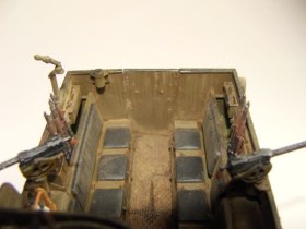 Модель собирал с доработками: задние амортизаторы заменил на проволочные, крепления рамы к корпусу из жести, заново сделал недостающие элементы рамы, в наборе их в принципе не было, решётка радиатора из остатков травления, родные жалюзи полностью вырезал, уж больно они убогие и неправильные, и сделал из жести, решетки фар травление, внутренности фар самодел, по всей модели заменил крючки-крепления на проволочные, приборная доска травление, стволы пулемётов RB models, крепления инструментов из жести, защита канистр пластик и обувная бумага, все скатки обувная бумага, маск сеть бинт, все ремни бумага, трос плотная нить, цепь самодел из проволоки . Много написал, может чего и забыл )