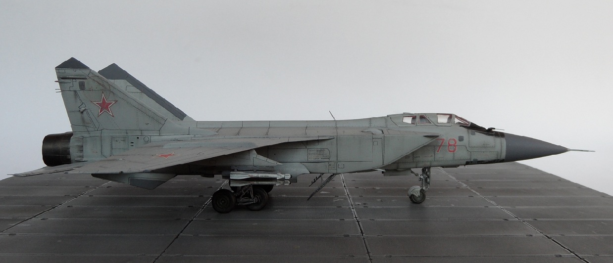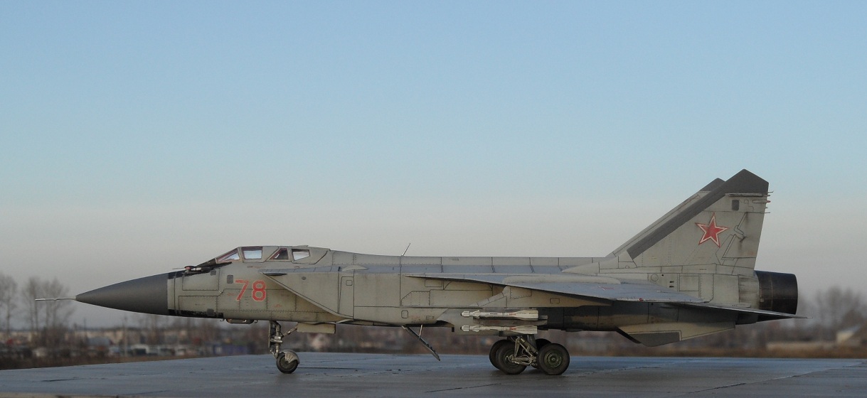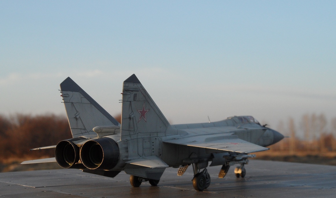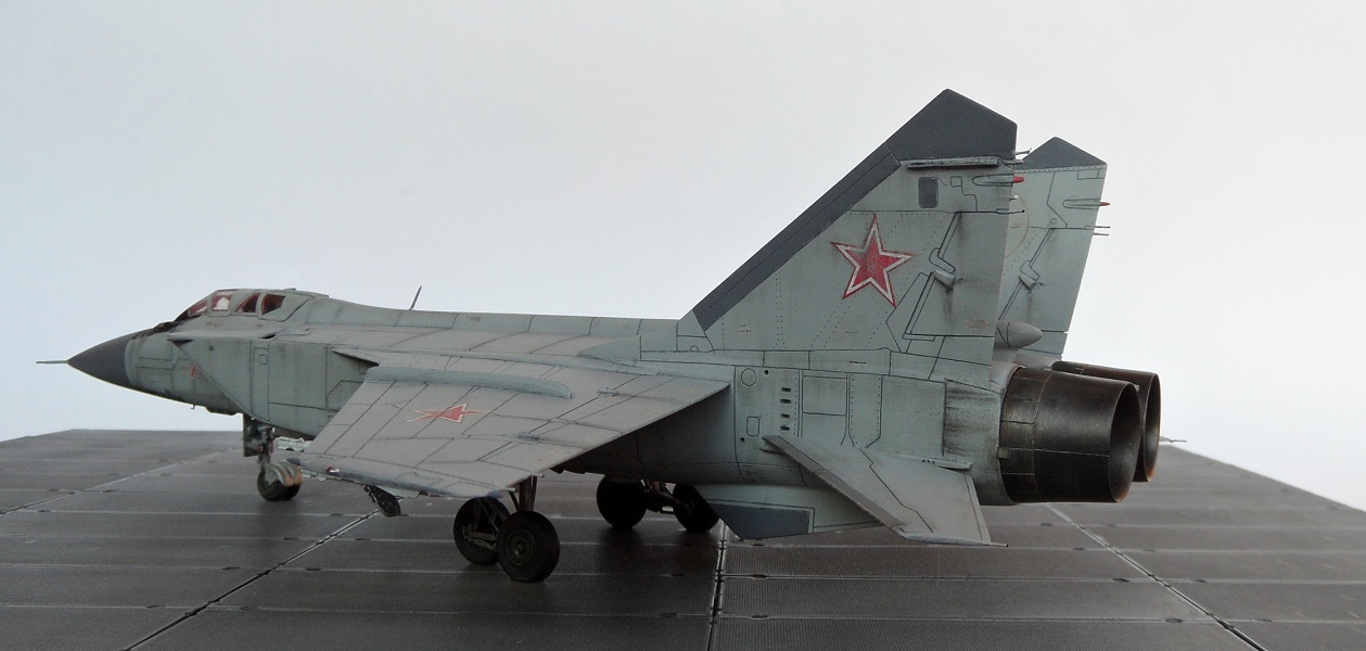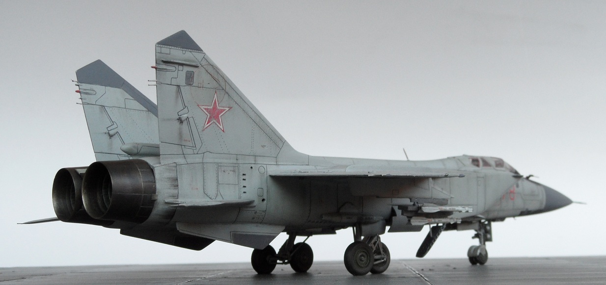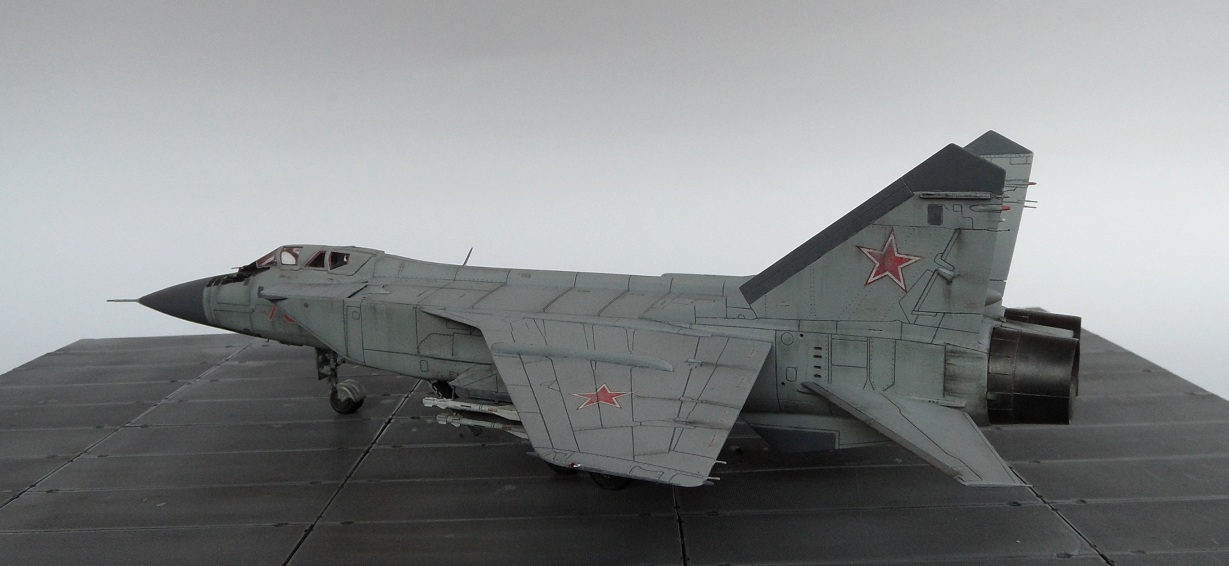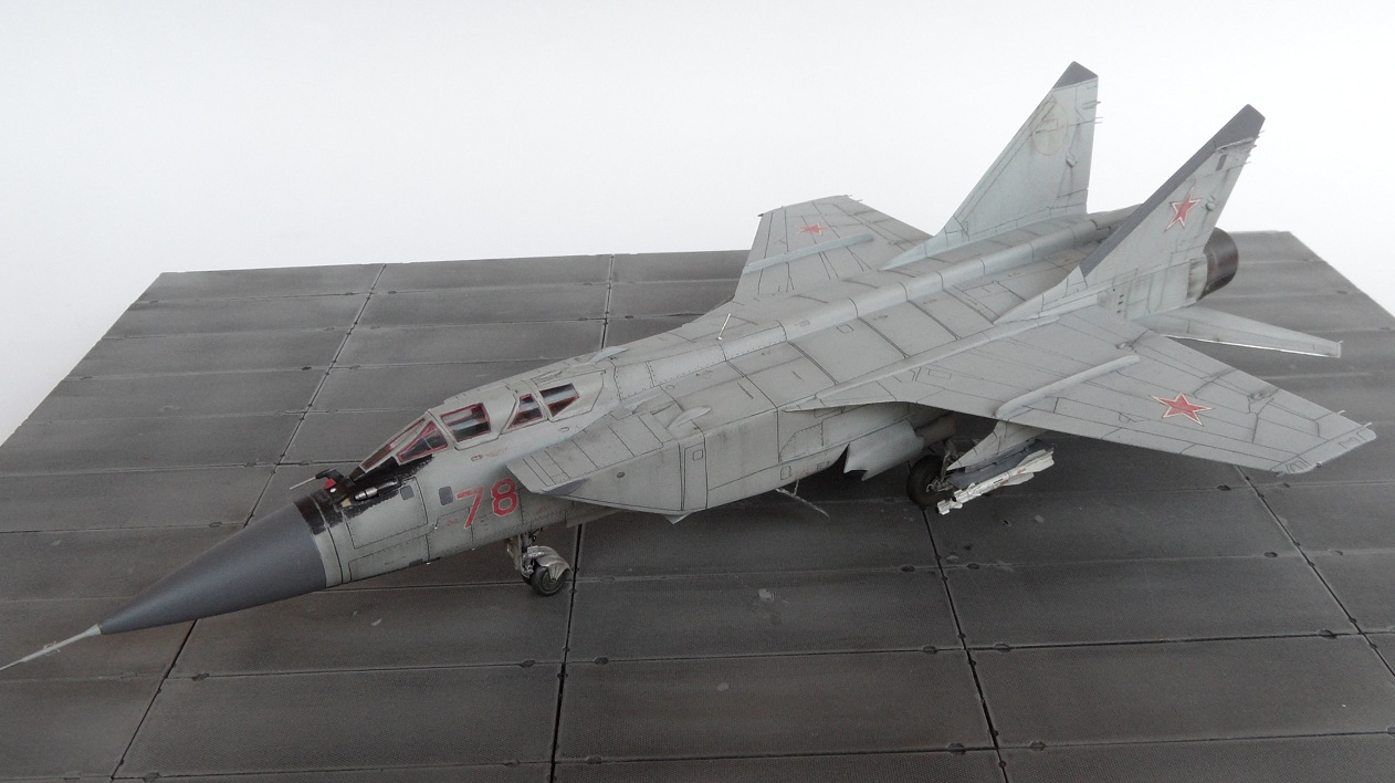 Отличный 31-й. Сборка - отделка как всегда на высоте. Просмотр доставил. Два маленьких придиризма: звезда на левом киле кривовато встала и АПУ для Р-60 по форме далеки от оригинала, но это поправимый вопрос, если будешь дорабатывать вооружение.