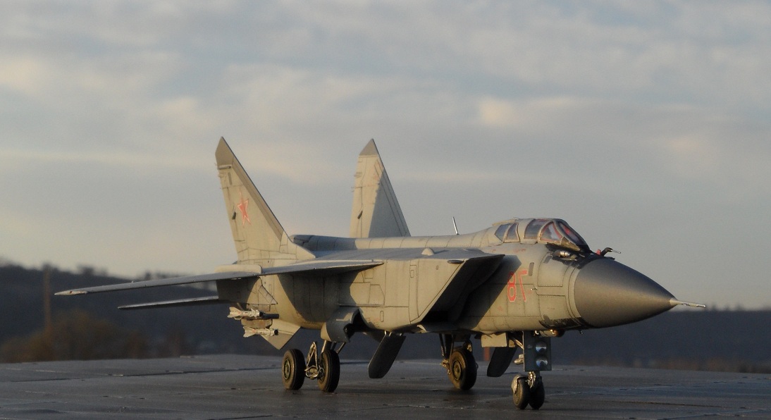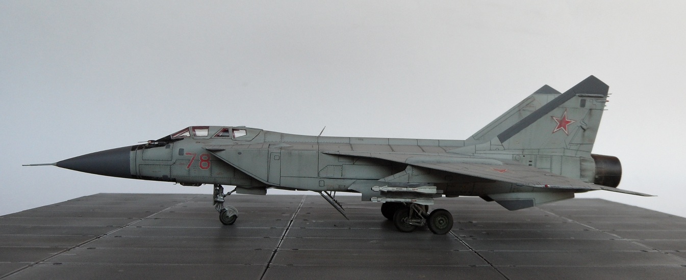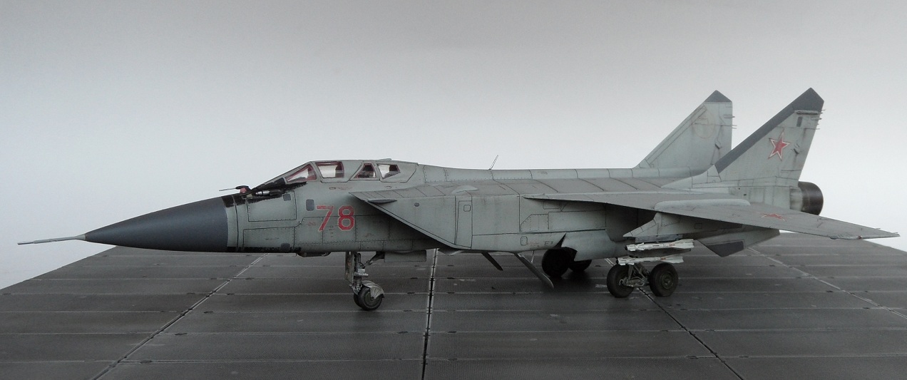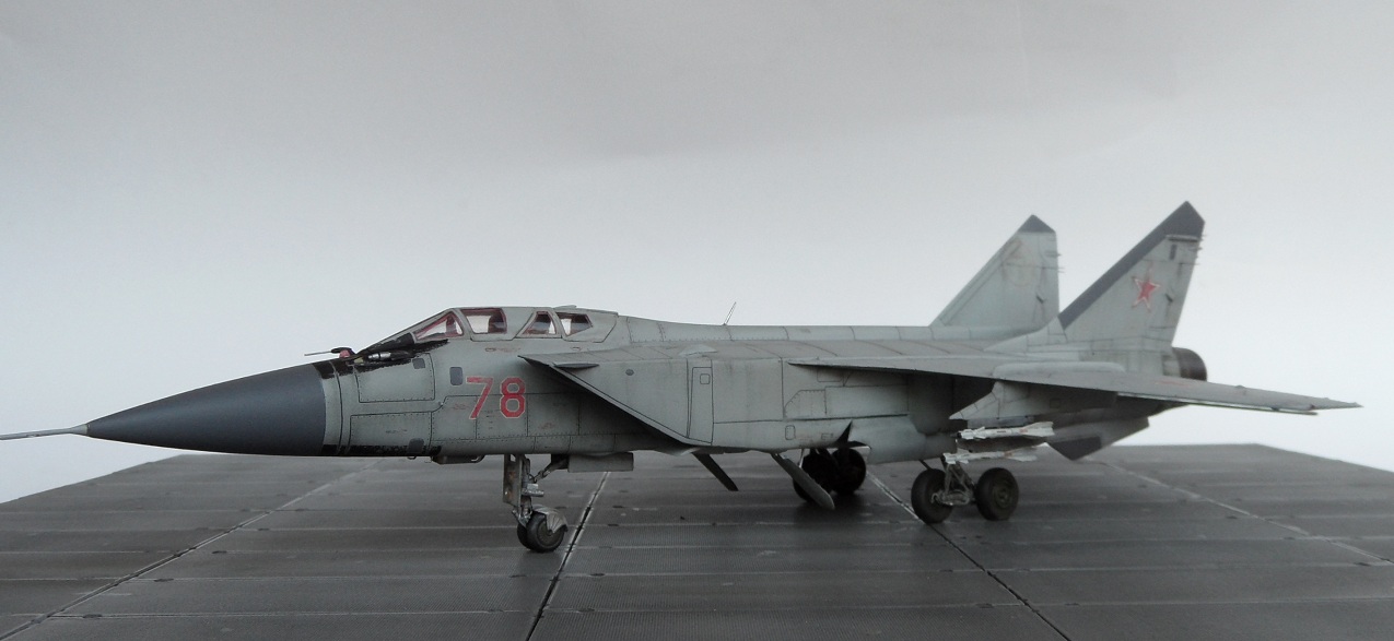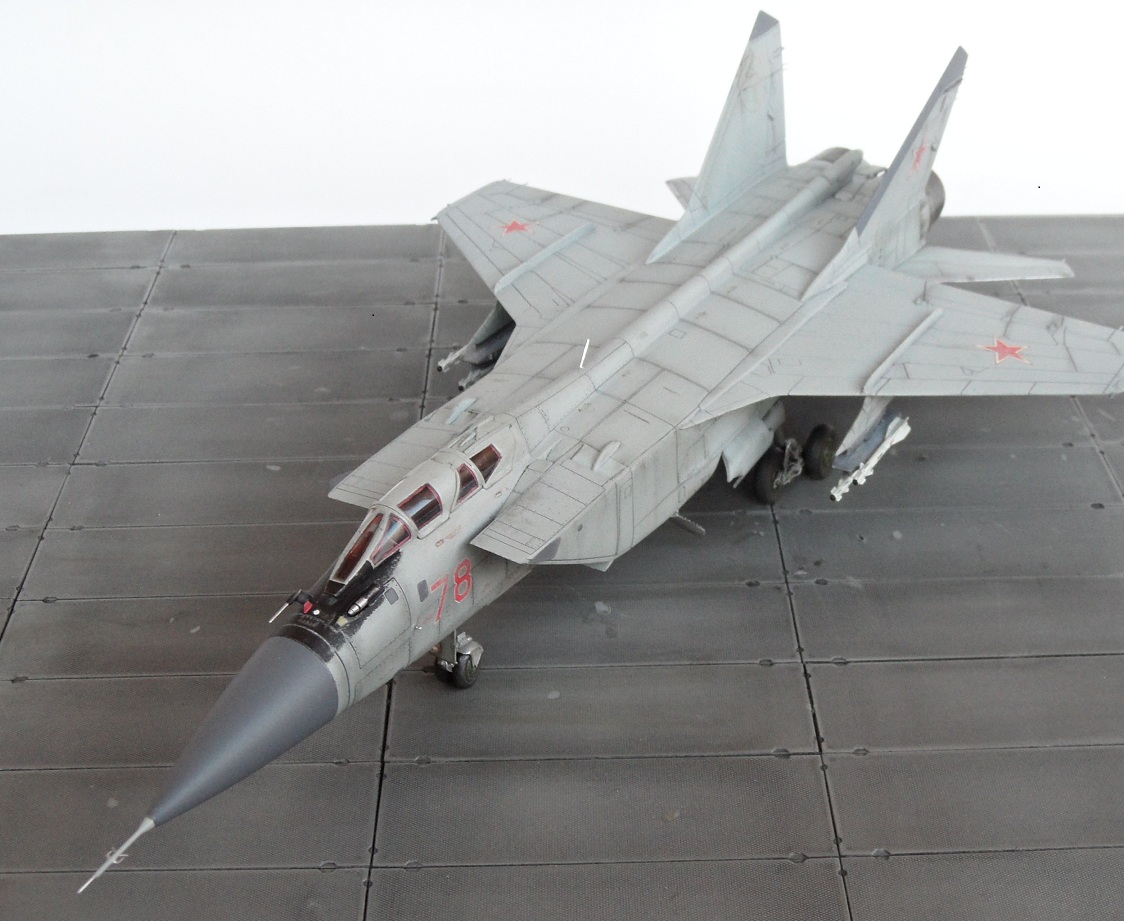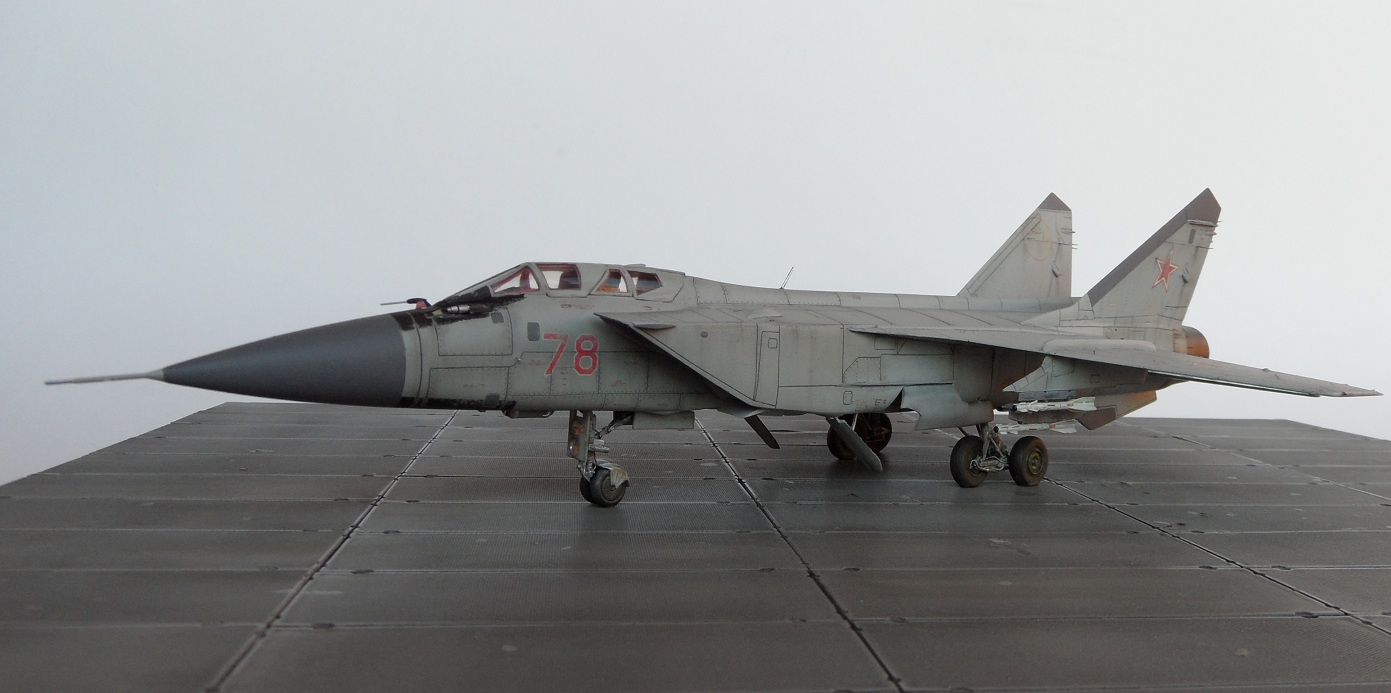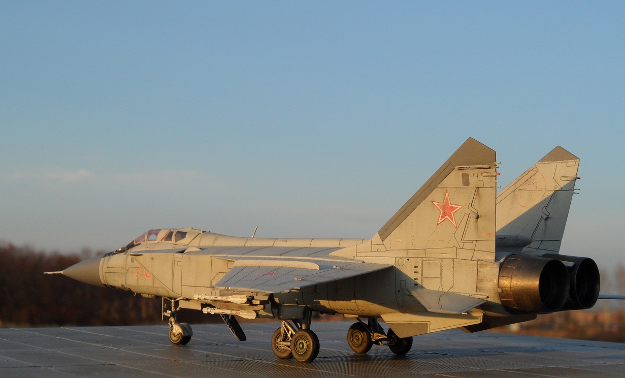 Отличный 31-й. Сборка - отделка как всегда на высоте. Просмотр доставил. Два маленьких придиризма: звезда на левом киле кривовато встала и АПУ для Р-60 по форме далеки от оригинала, но это поправимый вопрос, если будешь дорабатывать вооружение.
