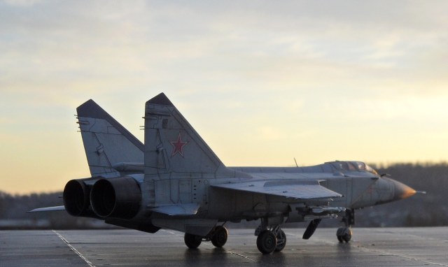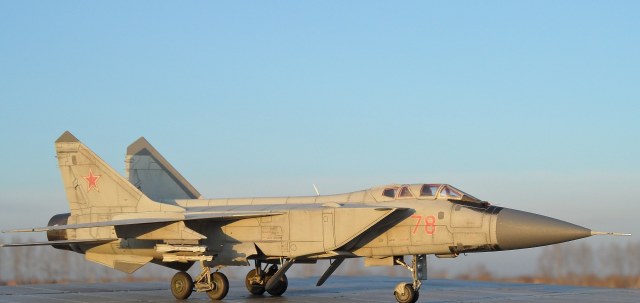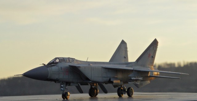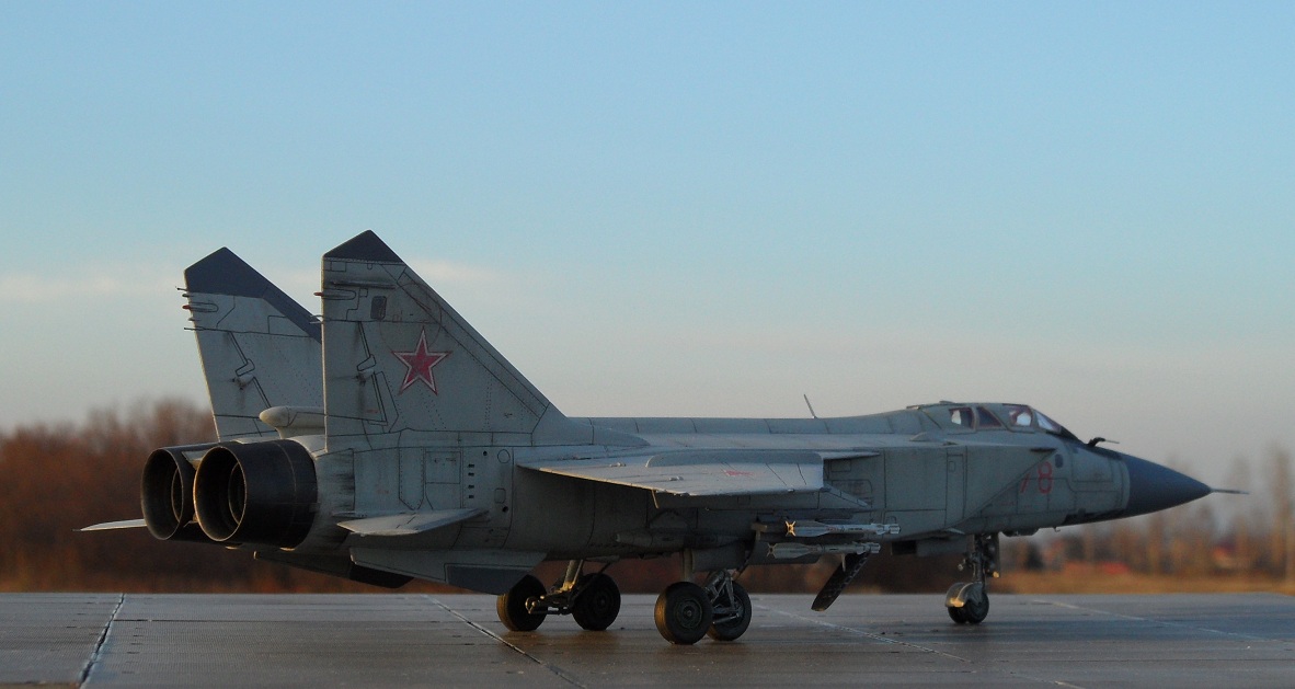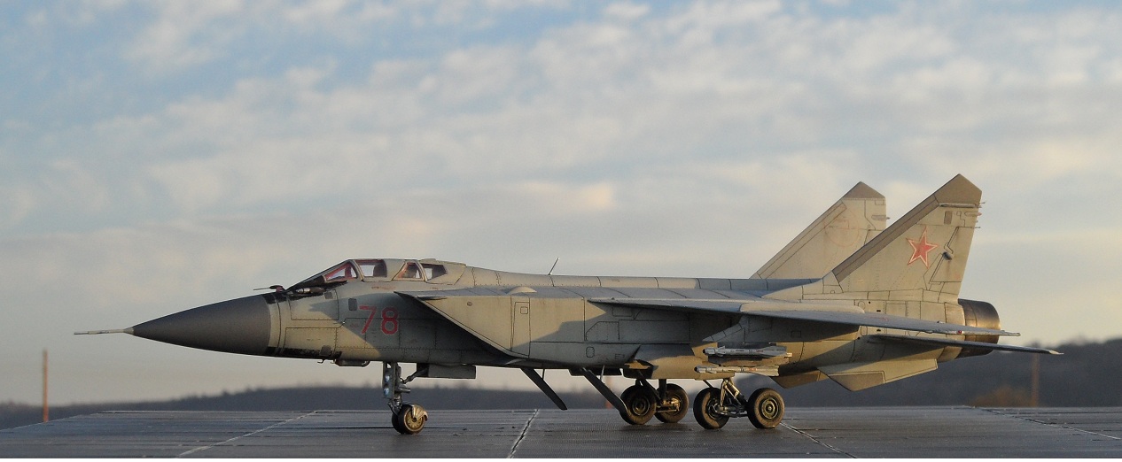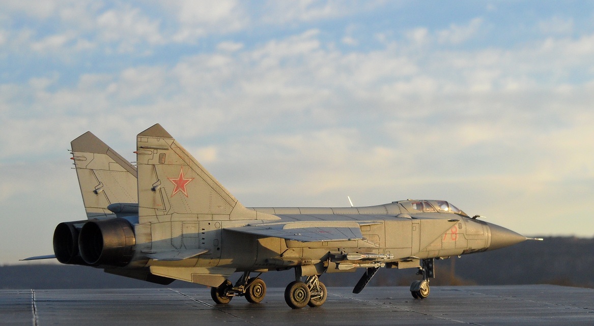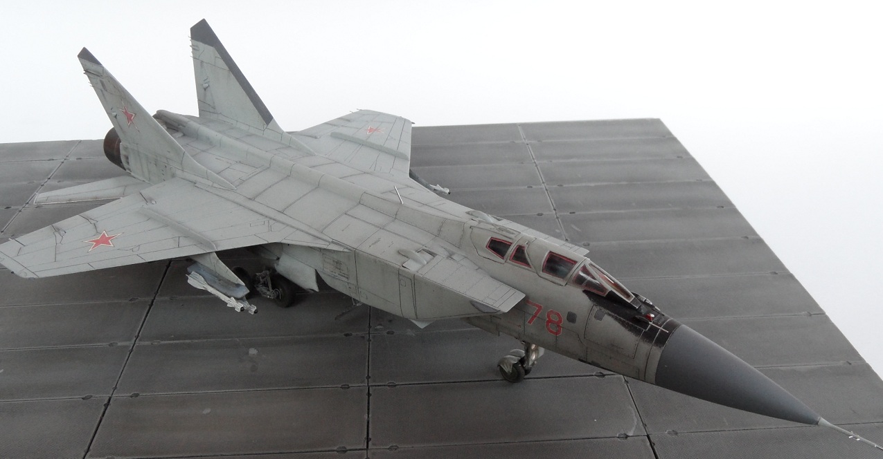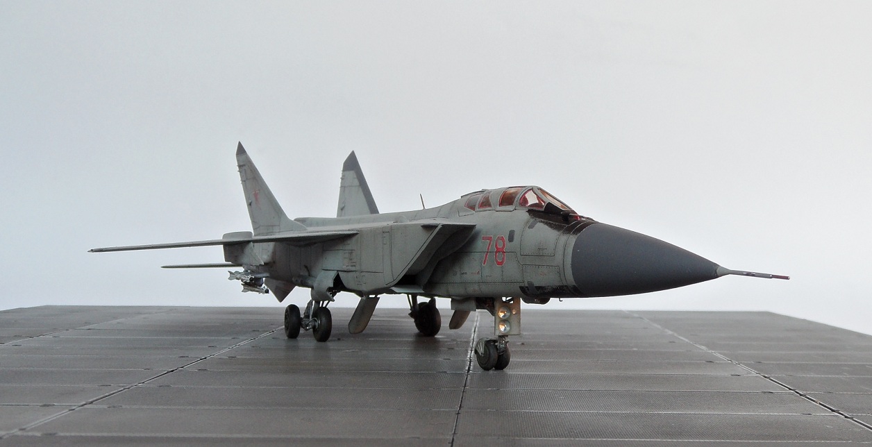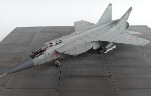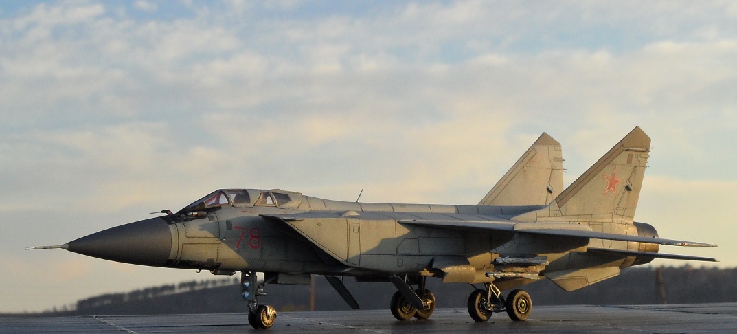 Отличный 31-й. Сборка - отделка как всегда на высоте. Просмотр доставил. Два маленьких придиризма: звезда на левом киле кривовато встала и АПУ для Р-60 по форме далеки от оригинала, но это поправимый вопрос, если будешь дорабатывать вооружение.