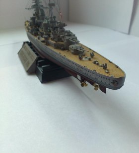 Данную модель приобрел вместе с графом и делал сразу после него более года назад. На первый взгляд литники приятно порадовали проработанной мелочевкой для этого масштаба, но на деле все оказалось не так радужно. При склейке половин корпуса не обошлось без шпатлевки ,да и палуба никак не хотела вставать на место. Пришлось переделывать стволы и бронещиты, уж больно они были похожи на главный калибр. При монтаже такелажа пару раз ломалась передняя мачта, пластик очень хрупкий. А в целом модель порадовала.