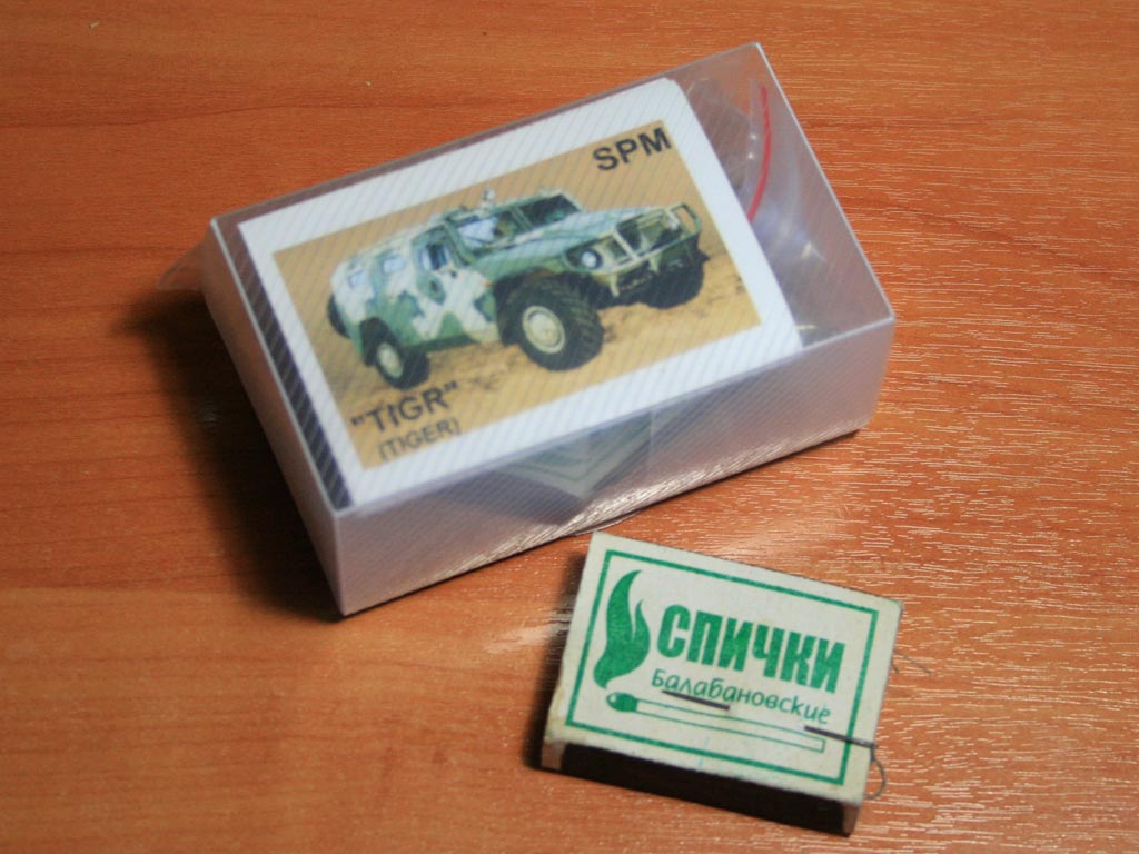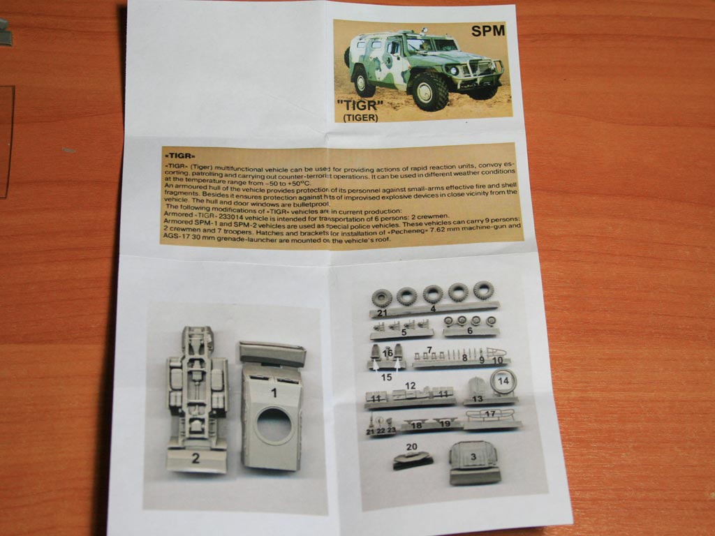 Весьма свежая смоляная модель от Танкограда предлагает собрать ГАЗ Тигр в варианте СПМ (специальной полицейской машины). В матчасть ещё глубоко не залезал, но если не ошибаюсь, полицейские Тигры от военных отличаются только размещением бойцов, поэтому можно делать Тигра как в белом варианте с синей полосой и надписью Полиция, так и в камуфляже. На адекватность камуфляжа также намекает возможность установить к люку на крыше автоматический гранатомёт.