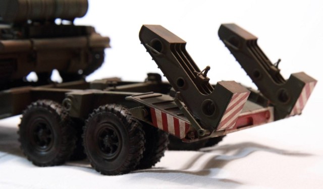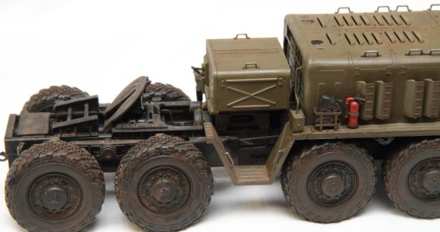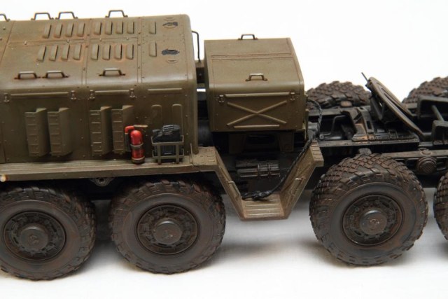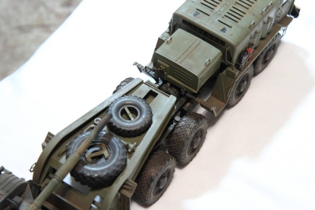 Это я обнаружил довольно поздно, когда модель была собрана и покрашена. А точнее когда стал собирать Скад от Дракона и решил воспроизвести всю ходовую 547 МАЗа. А для этого пришлось надыбать кучу литература по шасси и 543 и 547 МАЗа. Вот тогда и растроился.
