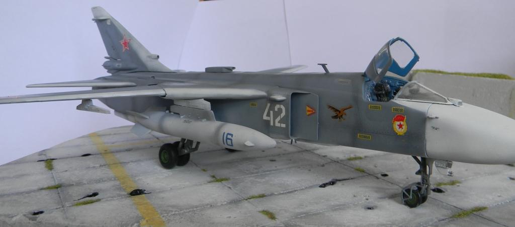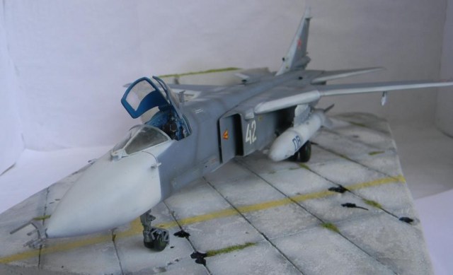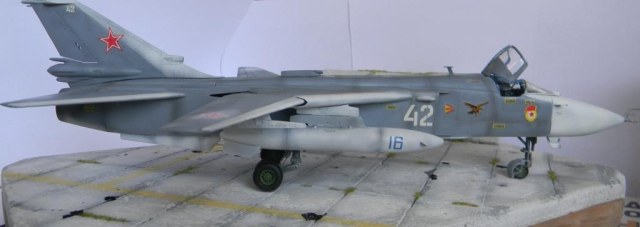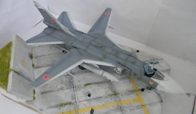 Модель самолёта Су-24 в масштабе 1/72. Из добавлений - кабина "Неомега". Постарался собрать за майские выходные , поэтому мат часть пришлось пустить побоку. Отвратительной прозрачности фонарь и дубовые деки отчасти скрали удовольствие от сборки довольно неплохой модели. Шпатлёвку не использовал вообще.