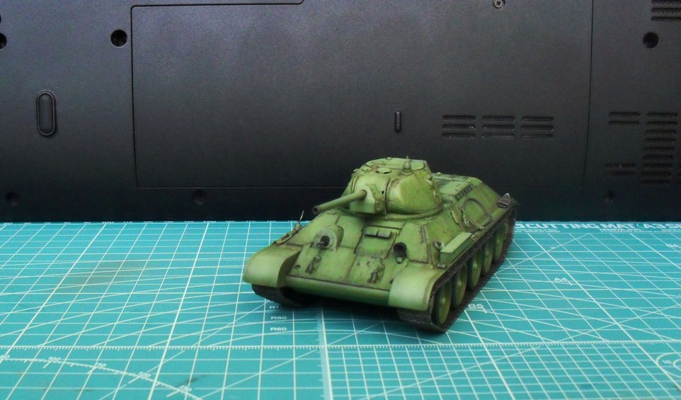Тамия выпускает т-34 - 43 года , по этому пришлось дорабатывать корпус. Были удалены отражательные планки , срезаны лишние болты с трансмиссионного люка. была поставлена заглушка на крышу башни под левый перископ. Установлена дополнительная лобовая плита-что характерно для этого периода. И другие мелочи .