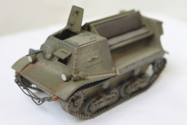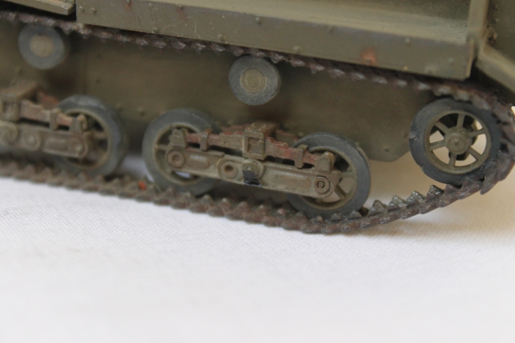 ...Интересный малыш.Исполнение понравилось,но вот мужик внутри не очень.Не новость,что гусеницы надеты не туда.Но в те годы их ставили "как фишка ляжет". Так...наблюдение.
