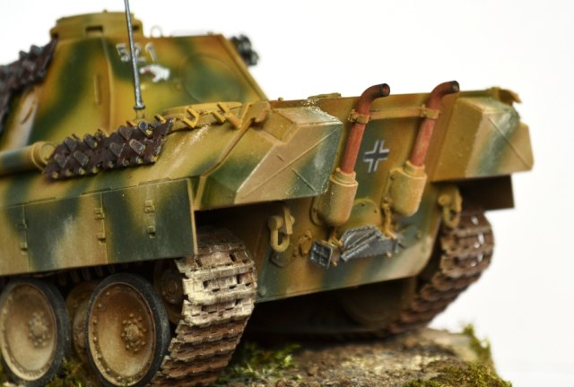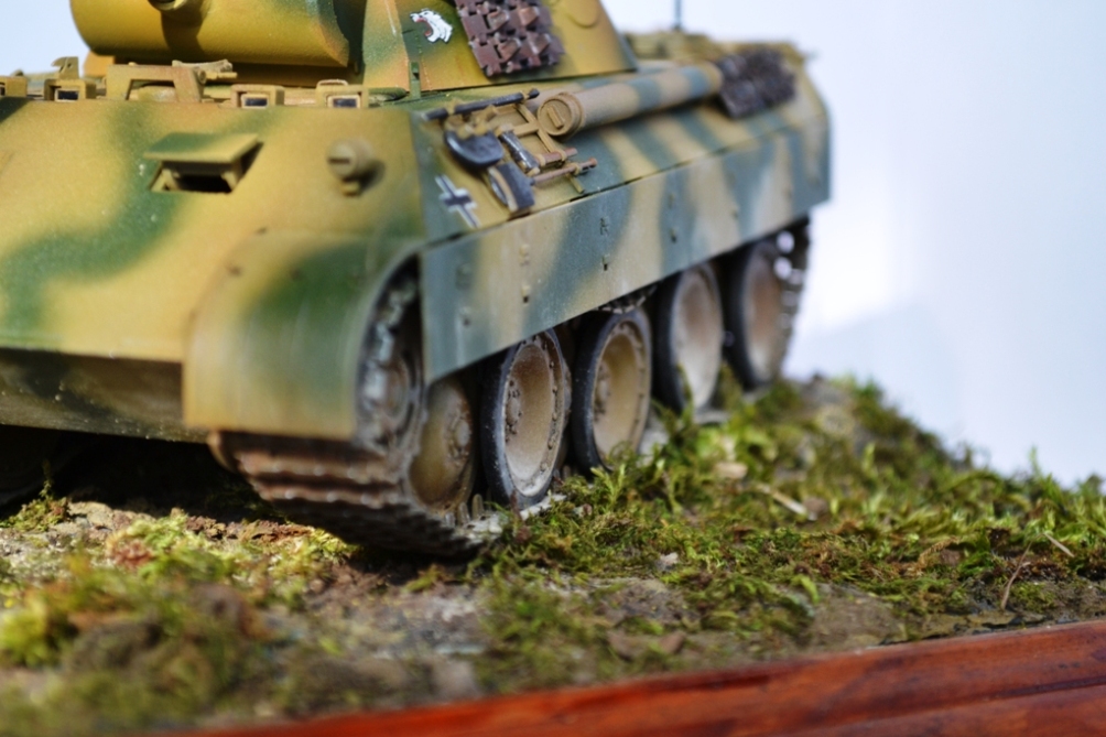 Теперь о самой модели, первое, что хотелось показать это работу подвески, соответственно пришлось сделать подложку, ну или виньетку, что я делать не очень люблю, но другого выхода не было. По исторической привязке машина 43 года, операция «Цитадель», еще свеженькая и необстрелянная, вот-вот вступит в бой. По мат. части насколько я вникал, вроде все ровно, может где, что и пропустил не разглядев на фото.