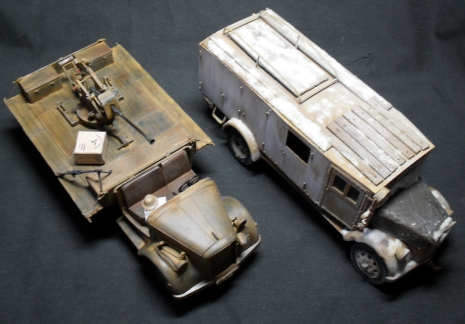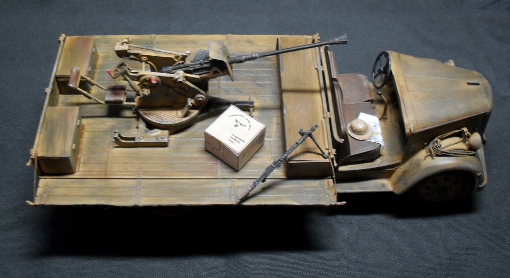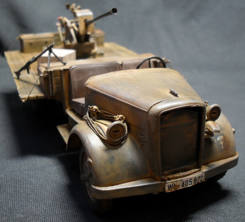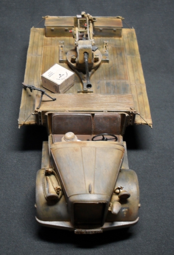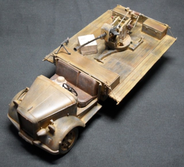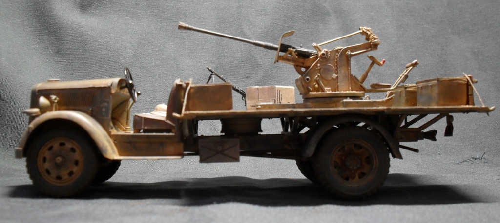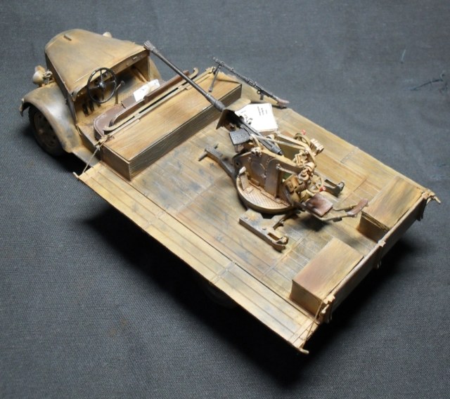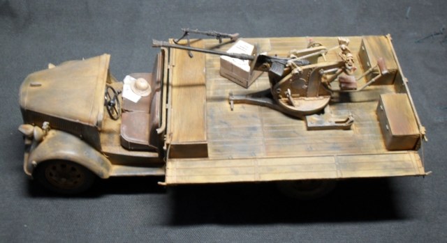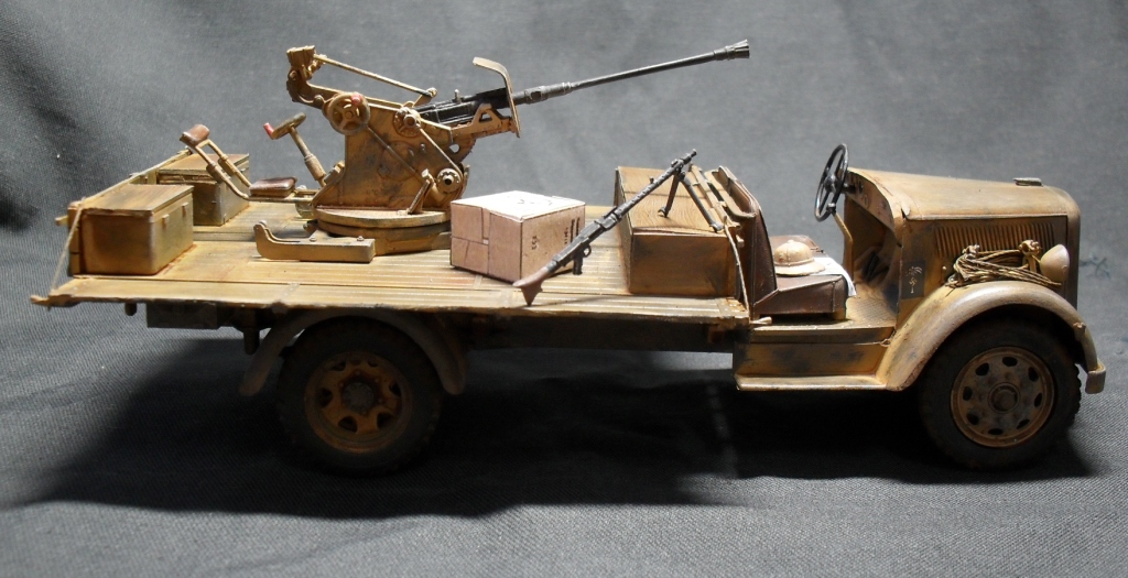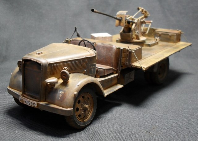 О модели: Опель Италовский, достался мне собранным процентов на 95, отрезал крышу, убрал двери, укоротил борта, вырезал решетку радиатора, дальше вгоняться в матчасть не стал, не вижу смысла бороться с Италом. Флак 30 от Ески, такой же раритет, может еще раритетней)))