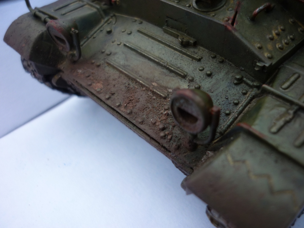 красил отдельно низ и верх, когда состыковал то получилась щель . шпаклевать уже сил не было. каждый трак на гусянке обтачивал до по получения зазора, чтоб состыковались. траки собирал 3 суток по 4-5 часов в день всреднем с перерывами, хуже не было пока в руках, даже пз38 от ВЭ собирались легче