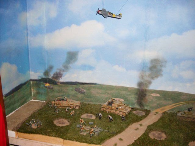 Мое участие в создании диорамы ограничено изготовлением самолетов и фонового рисунка на стене.