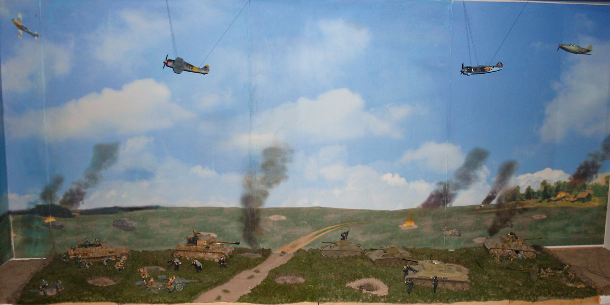 Диорама воссоздает поле боя в районе реки Разумная, Белгородской области. Данное боевое действие происходило 6 июля 1943 года.