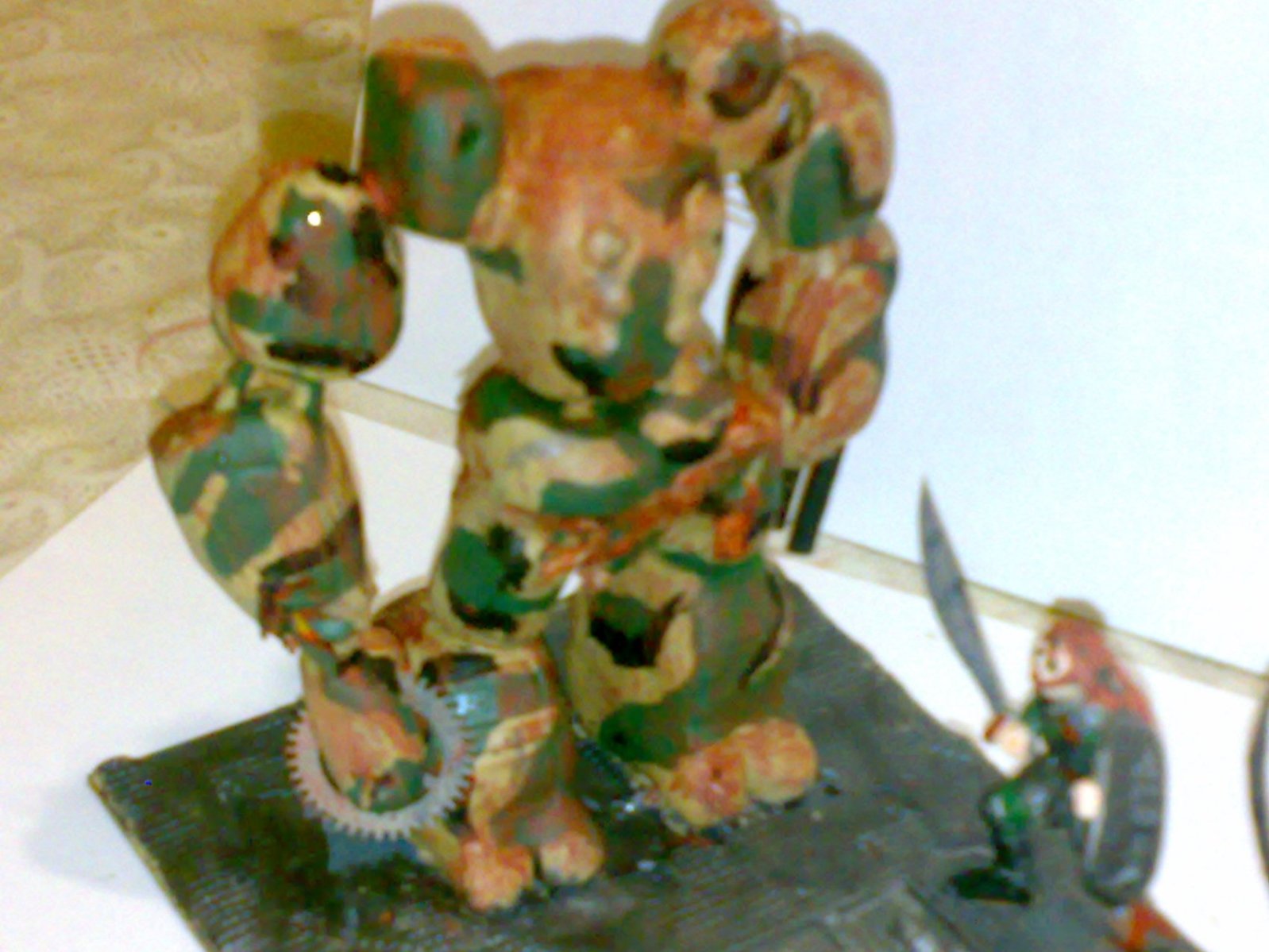 Вобщем лепился этот шедевр всеми нами.Да и окраска производилась коллективно гуашью,акварелью.И акрилом(стальным)от звезды.Подставка зделана из печатной платы.Войны взяты из разных наборов солдатиков от технолога.