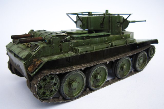 Представляю вашему вниманию модель танка БТ – символа мощи Союза ССР 30-х годов и основы бронированного кулака РККА. Судьба прототипа во многом неоднозначна, но более всего в ней трагедии и героизма, самой высшей пробы. Созданный для развития прорыва в глубину обороны противника (в соответствии с «Теорией наступления современных армий» В.Триандафиллова), он, по иронии судьбы, принял на себя основную тяжесть оборонительных боев 41-го. В любом случае, эта машина была в строю и сокрушала врага с осени 1939-го (Халхин-Гол) до августа 1945-го (разгром Квантунской армии). А в промежутке были: битва за Москву, Сталинград, бои на Северном Кавказе, снятие блокады Ленинграда... Низкий поклон и вечная память героям-танкистам!