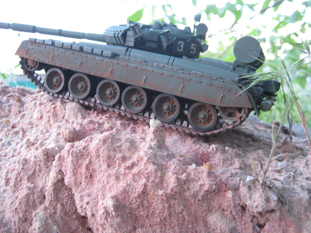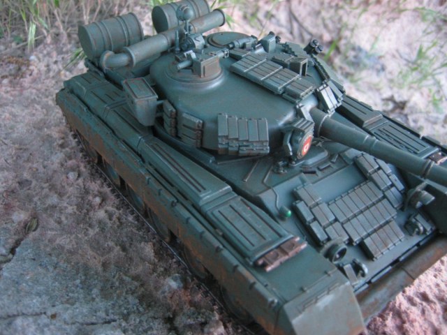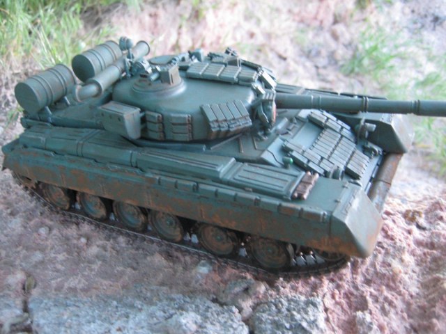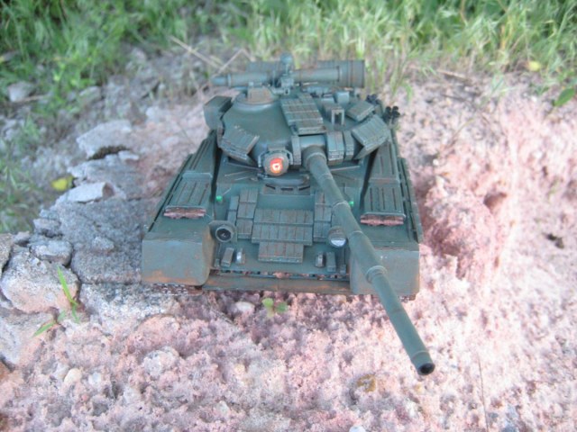 Мне кажется эту модель, хоть как крась и тонируй, она так и будет выглядеть игрушкой, дело в наборе, помоему более лучшим вариантом будет т-80 от звезды...