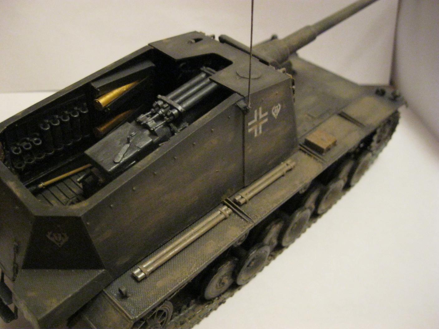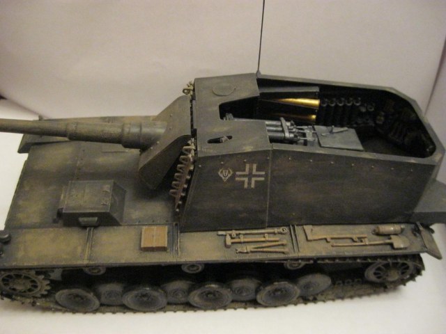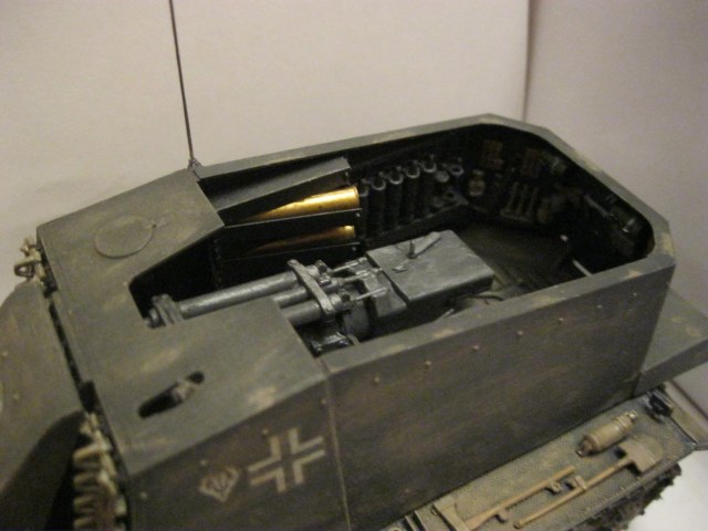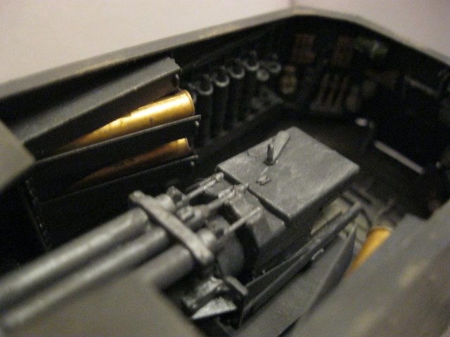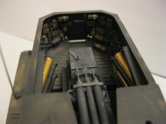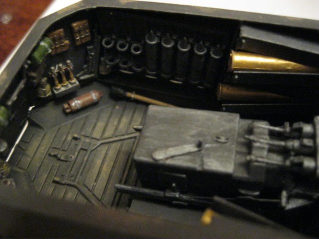 Боевое отделение понравилось, хотя выделяются светло-зеленые термоса. А так, смывки нет, тонировка никакая.