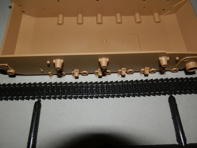Траки -резиновые,мягкие,довольно неплохо сделаны и клеются модельным клеем,но я не уверен в их копийности,вводят в сомнение цельные гребни,хотя еще раз повторюсь- в мат части не силен...