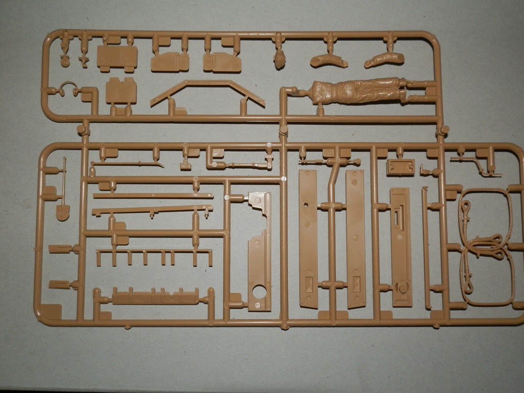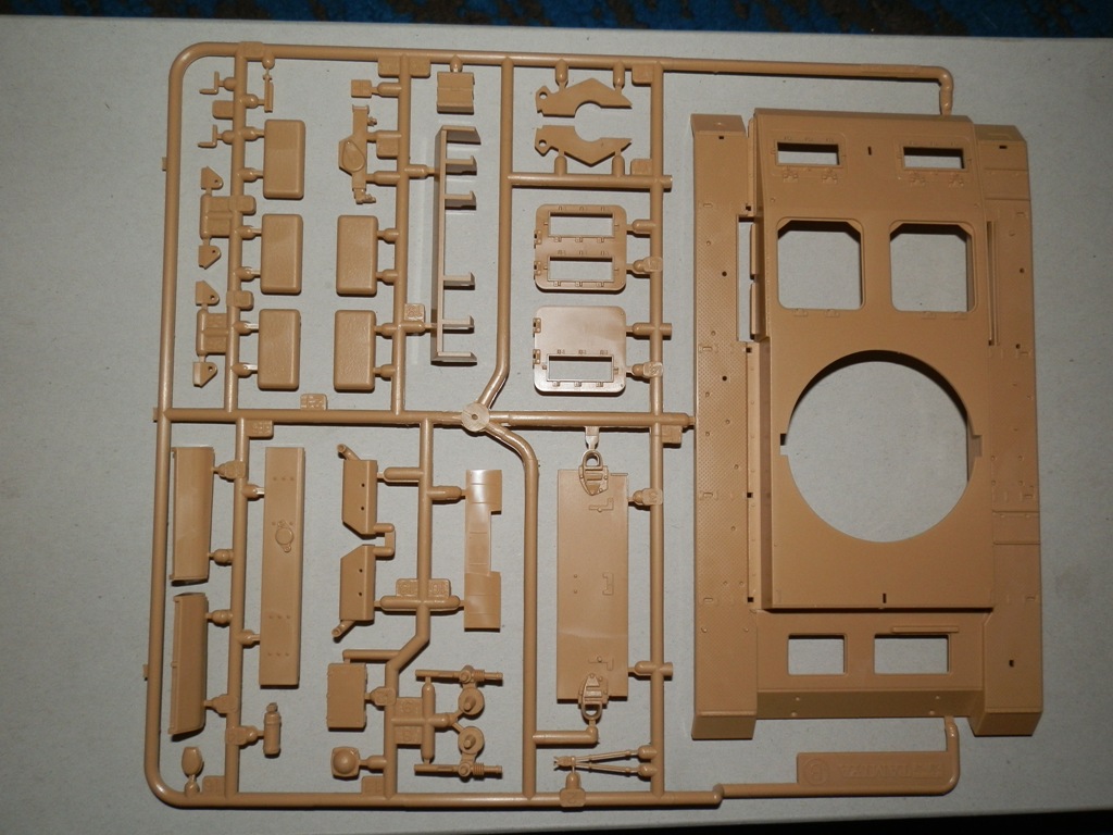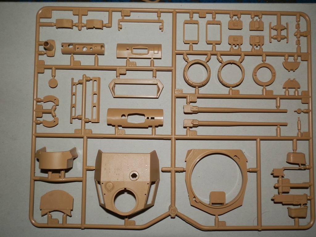 Качество самих литников отличное,облоя,утяжен не обнаружено,следы пресс форм незначительны.В модели проработанное днище,на крыше башни есть имитация винтов,из начинки только казенная часть орудия.Присутствует фигурка танкиста,как для бонуса весьма неплохо проработанная.Модель требует хотя бы травленых решеток,тк на их местах оставлены просто ниши,пластиковых аналогов не дается.