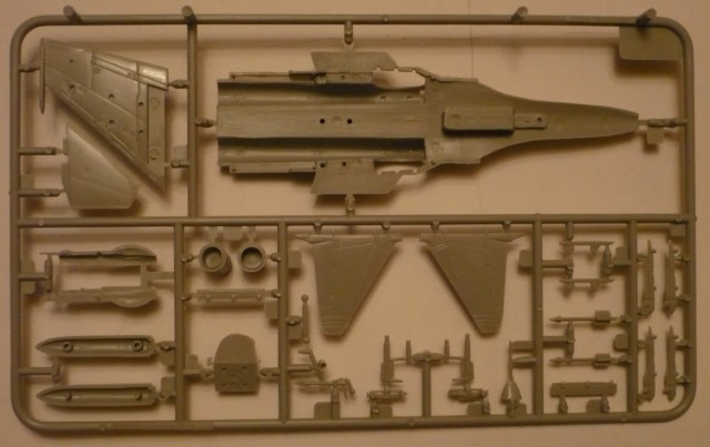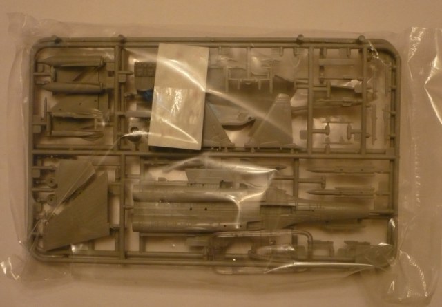 Коробка содержит в себе 3 литника, один из них прозрачный, содержащий в себе 2 детали (фонарь кабины, с предназначением второй пока не разобрался).
