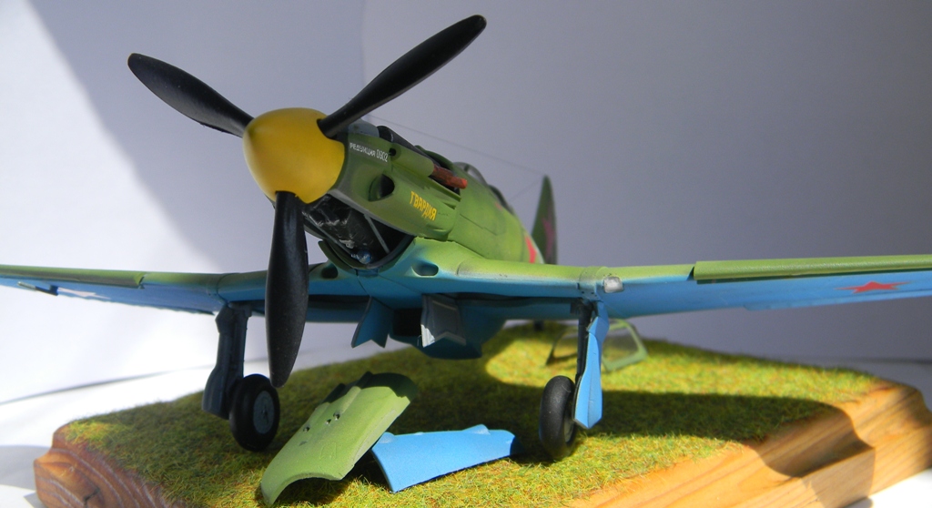Сборка из коробки , фюзеляж с кабиной сложился прекрасно , а вот крылья "дали жару", после фотосесии обнаружил , что перепутал местами стойки шасси - решил оторвать , но оказалось что сидят на удивление крепко , есть риск сломать стойку , вобщем оставил как есть... :-( Так же поменял звезду на киле на "разрезную" , та , что на фото отправилась в мусорку. Краски -"Звезда" . Спасибо , с уважением , Влад.