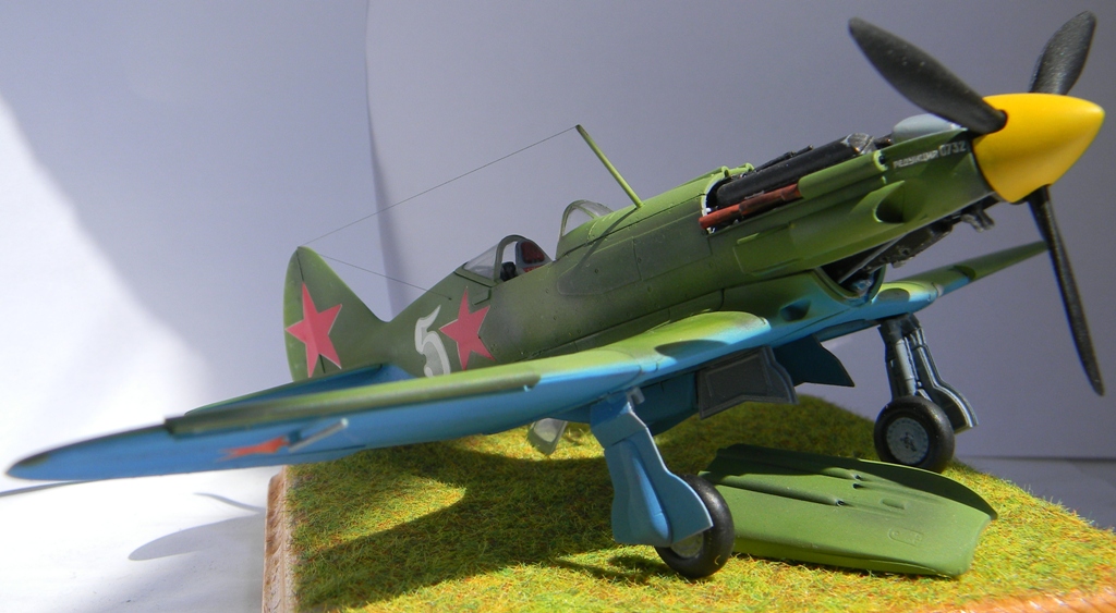Большое спасибо всем отписавшимся - с критикой согласен , можно сделать лучше. По цветам - для меня наиболее сложная покраска - это одноцветная , если просто облить краской , то модель не смотрится. Здесь попытался воспроизвести " цветовую " модуляцию , может не совсем удачно , но верх самолёта выкрашен 4 оттенками зелёного , низ -2 оттенка синего. Места под прямыми лучами - светлее , в тени - темнее. Сейчас вижу , что можно сделать смывку и поддуть " постшейдинг " , может ободрать чуть капоты , думаю модель от этого выиграет.